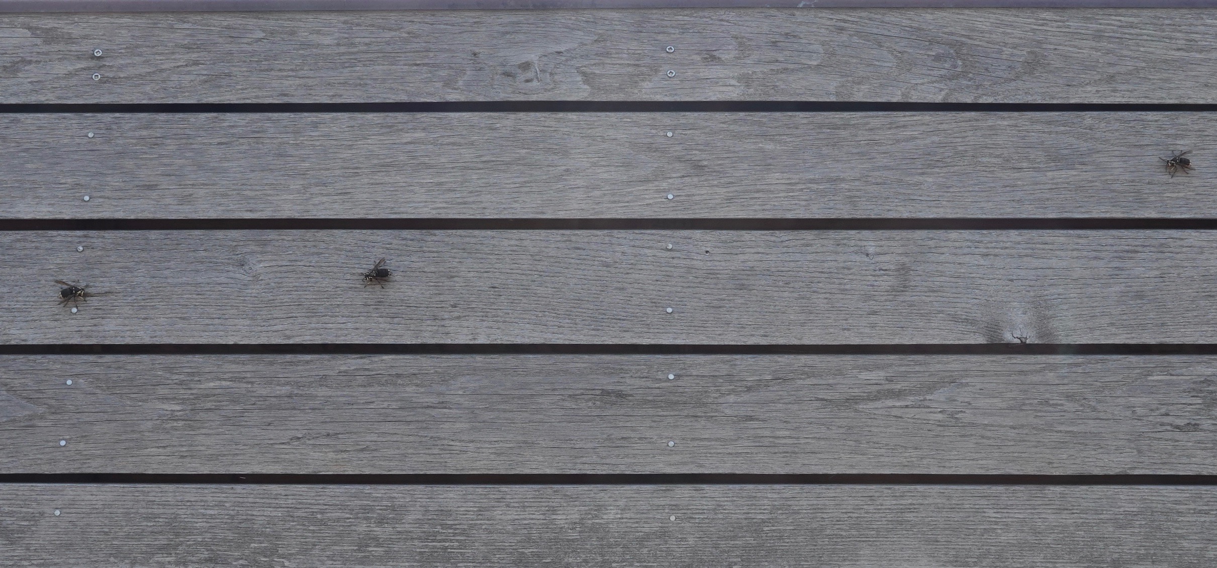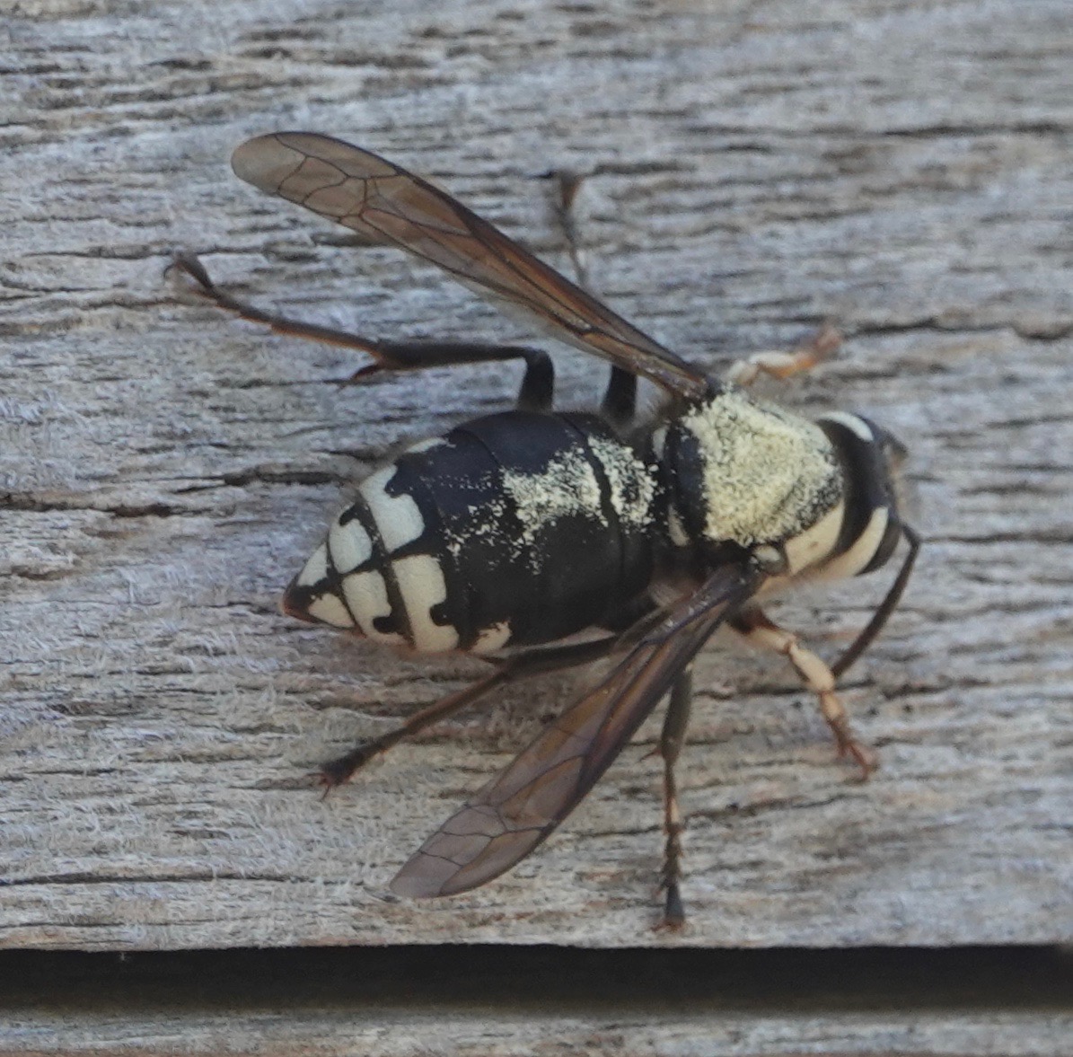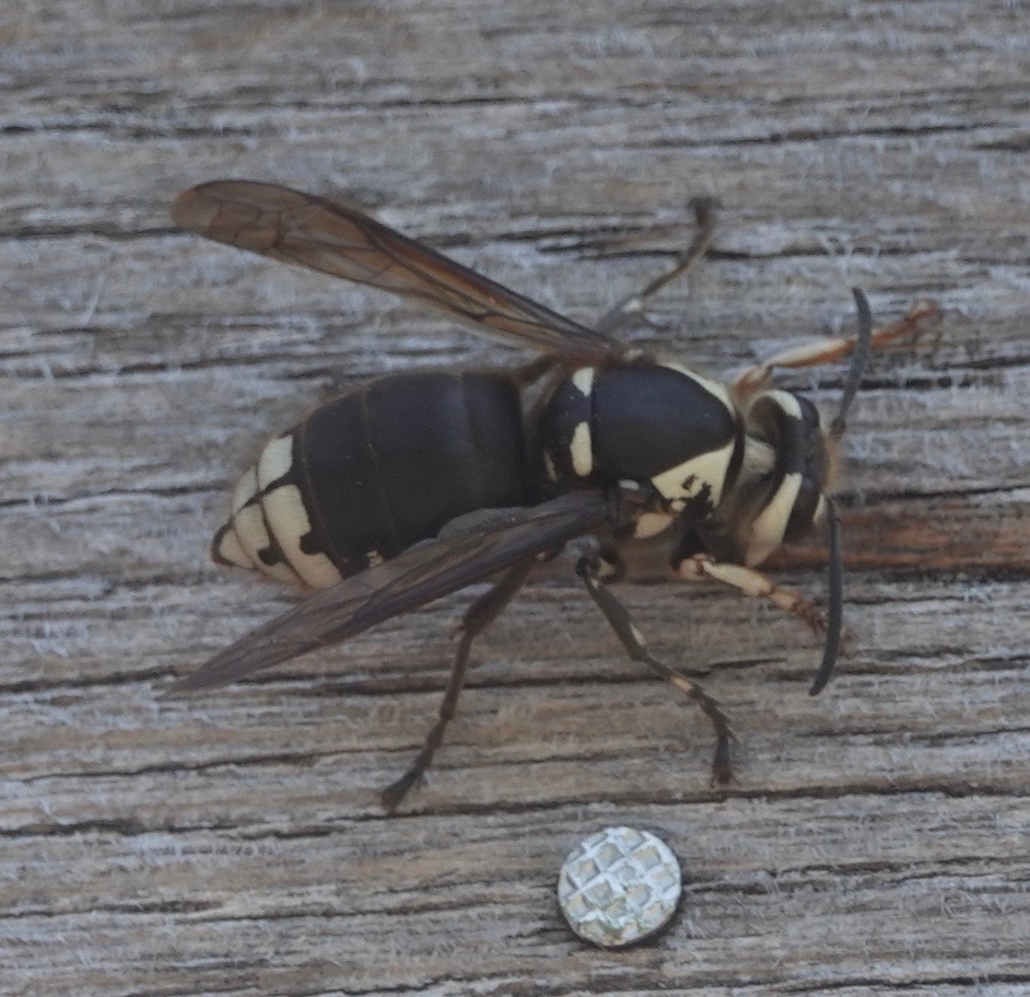 Bald-faced Hornets scraping wood fibers off the architecture.