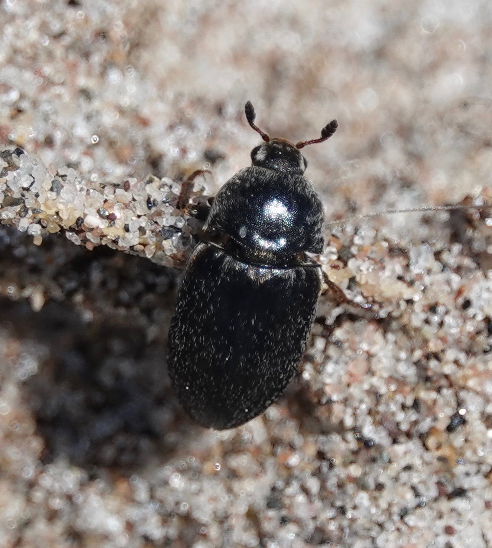 There were several of these Dermestes genus beetles under a dead duck on the beach.