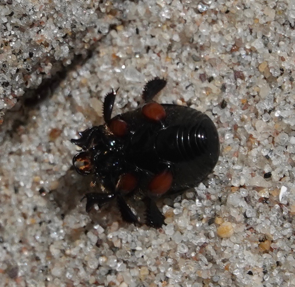 A resident of dunes, which surprised me because of all the trouble this one was having climbing out of a depression in the sand. Identity-confirmer on iNat, a beetle person, exclaimed over its presence here on Plumb Beach, happy to see a population of them still around.