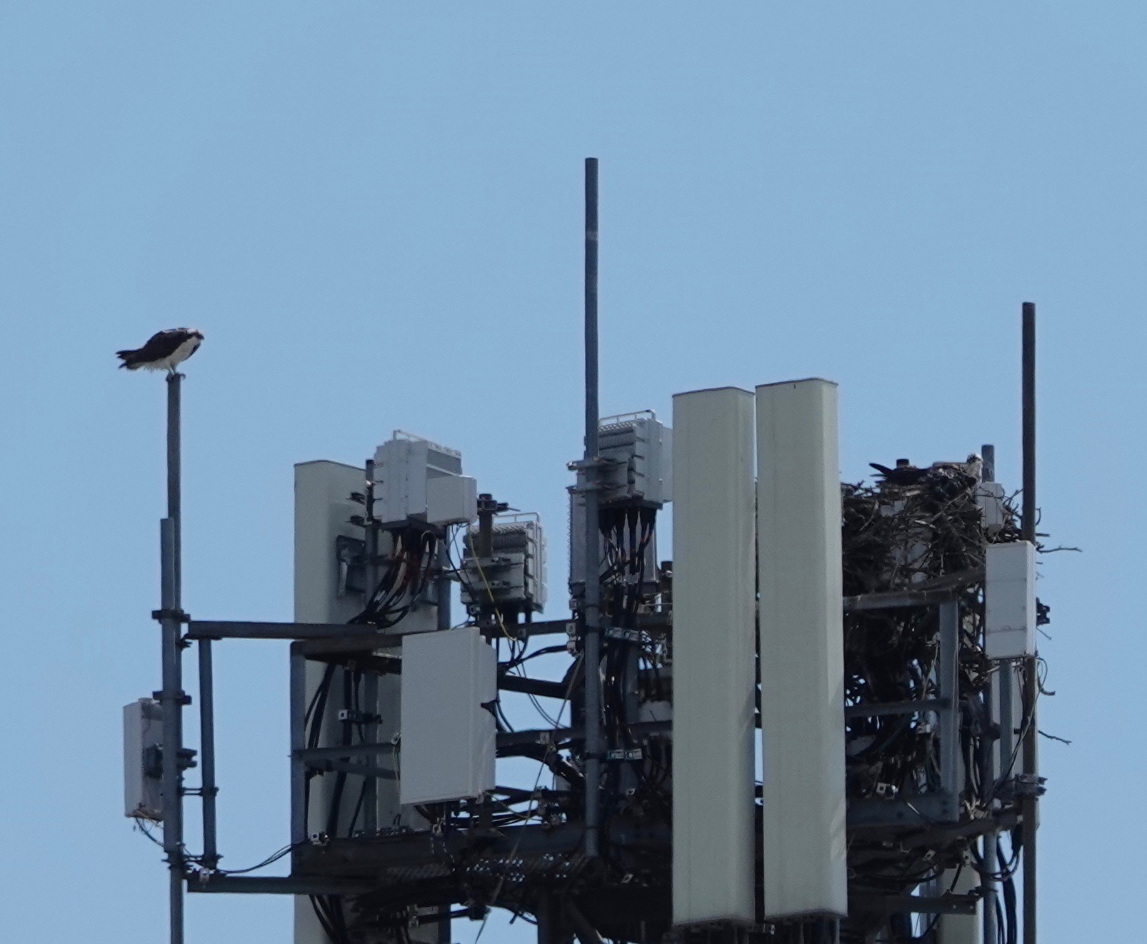 It turned out the Osprey weren’t coming far. This nest atop a comm tower was in the NE section of town. It can just be glimpsed in the very first picture above.
