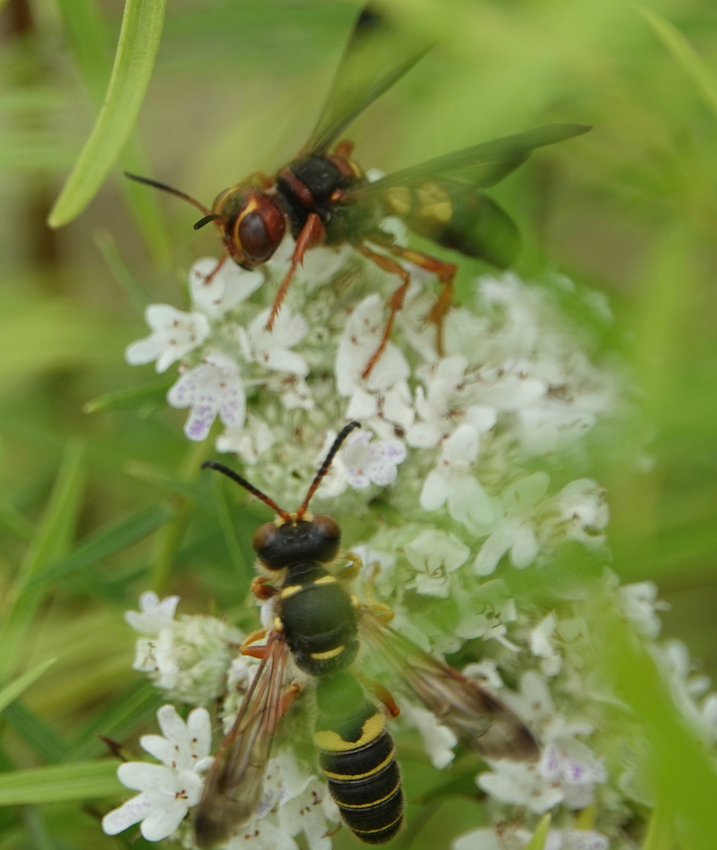Various bee and butterfly species were feasting on these tiny flowers, but for the next couple of days I will concentrate on the wasps.