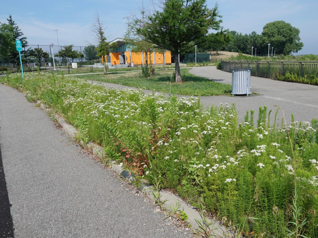 Amidst the general chaos and despair of Bush Terminal Park, ecologically speaking, this strip of Pycnanthemum has been bringing all the pollinators to the yard. I think it’s Narrowleaf Mountainmint/P. tenuifolium, one of a several species of this pollinator-magnet, and this is its first year.