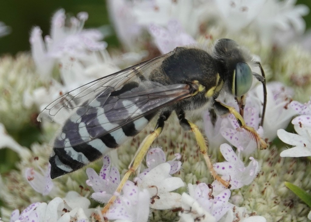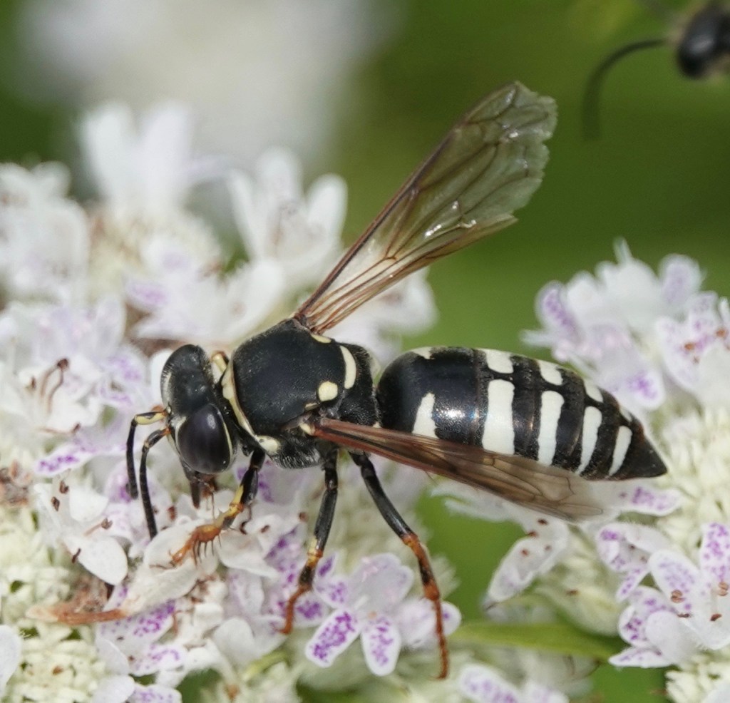 More commonly seen are Four-banded Stink Bug Wasps/Bicyrtes quadrifasciatus, whose prey is elucidated in their common name.