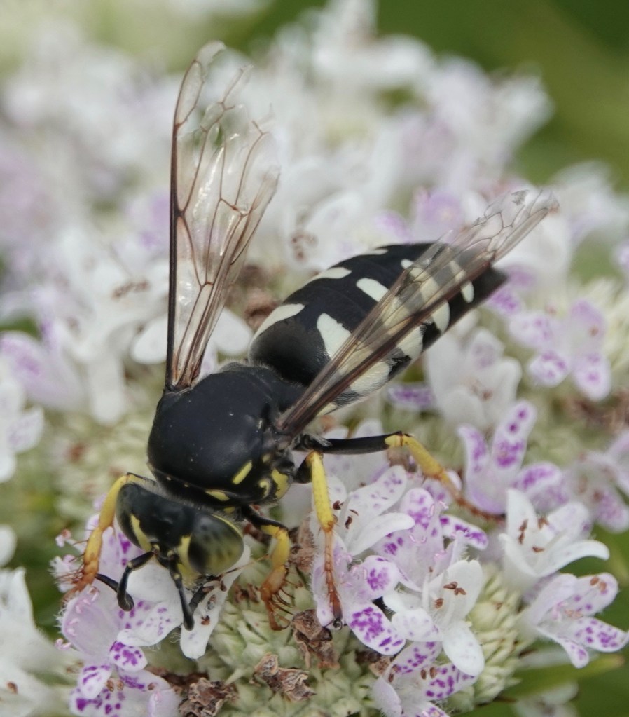 Here’s another. The most frequently seen wasp on these flowers at Bush Terminal. There’s a good bit of sandy soil around, which is what these nest in.