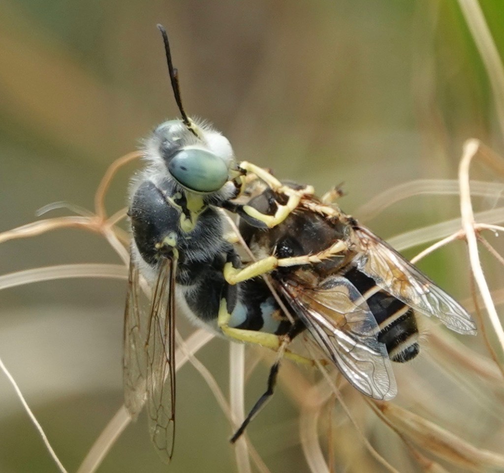 Bicyrtes ventralis. This is another sand wasp (Bembicinae), a hunter of true bugs. First time I’ve seen one of these.