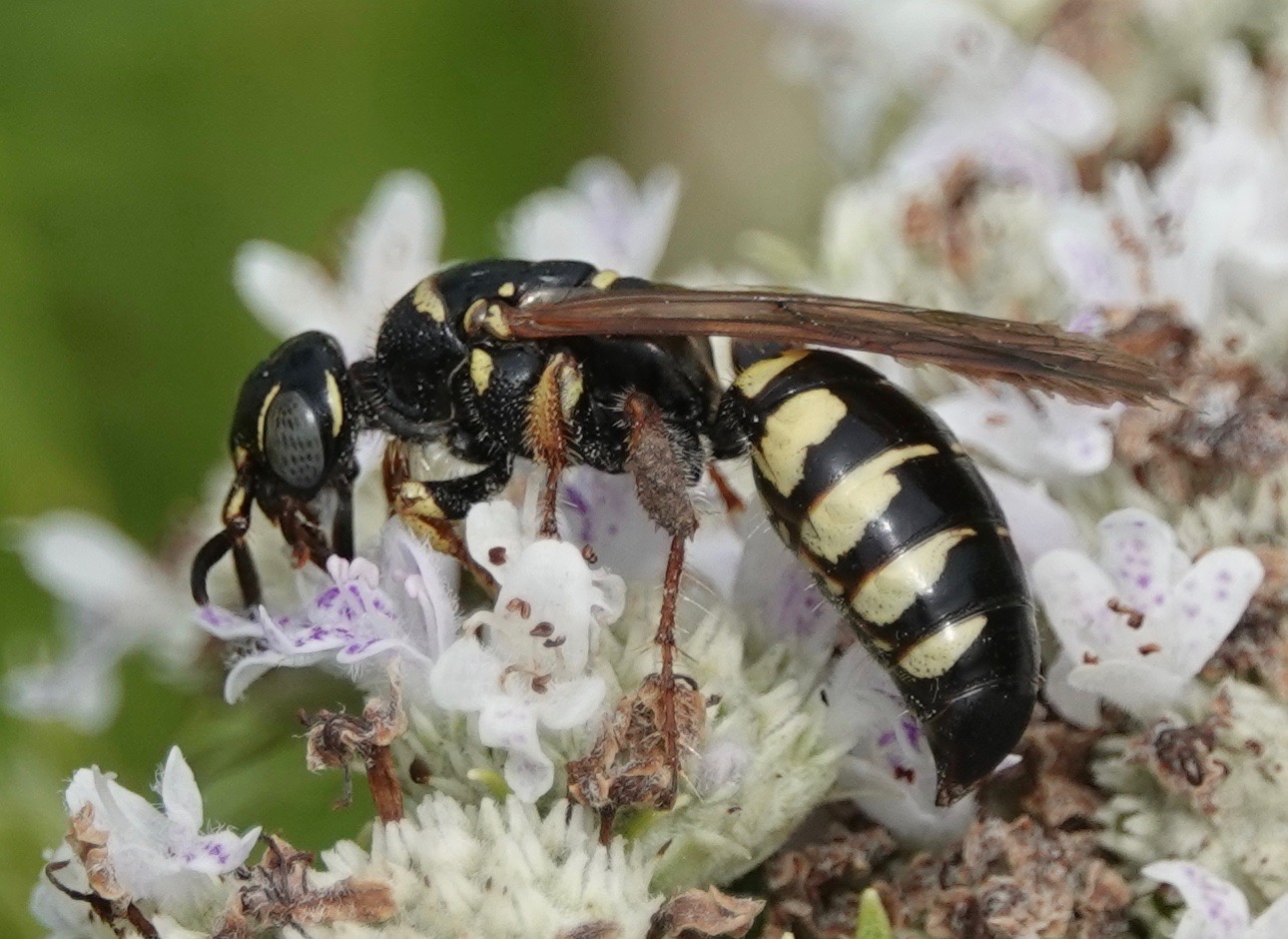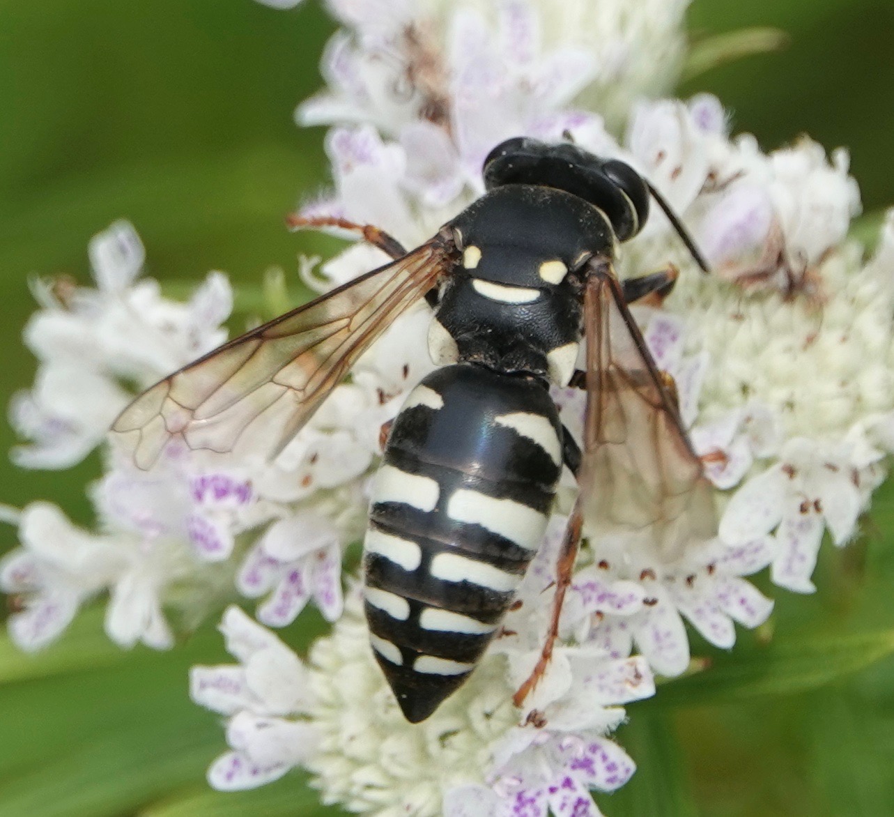 More commonly seen are Four-banded Stink Bug Wasps/Bicyrtes quadrifasciatus, whose prey is elucidated in their common name.
