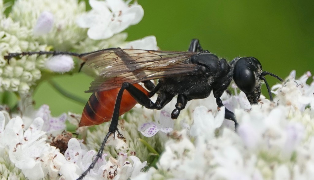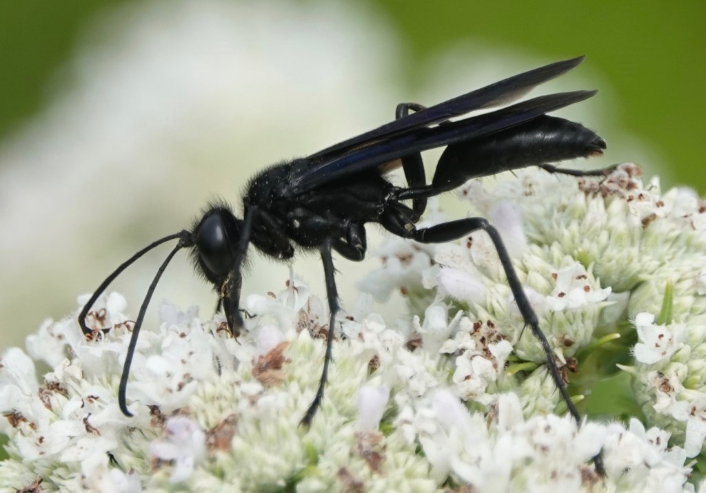 Great Black Digger Wasp/Sphex pensylvanicus. Katydids.