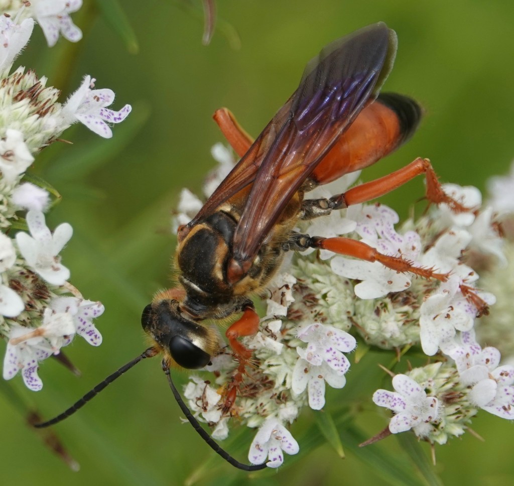 Great Golden Digger Wasp/Sphex ichneumoneus. Katydids.