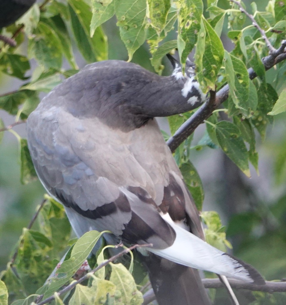 Pigeons have been congregating on Common Hackberry branches barely strong enough to hold them.
