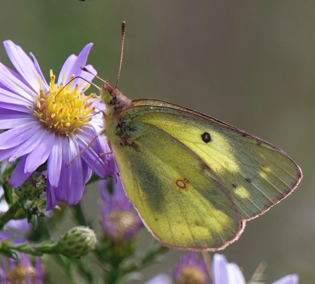 Clouded Sulphur/Colias philodice on asters/Symphyotrichum