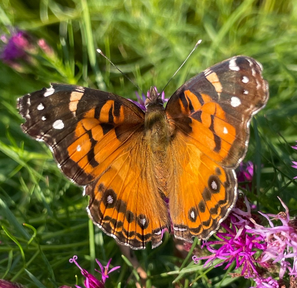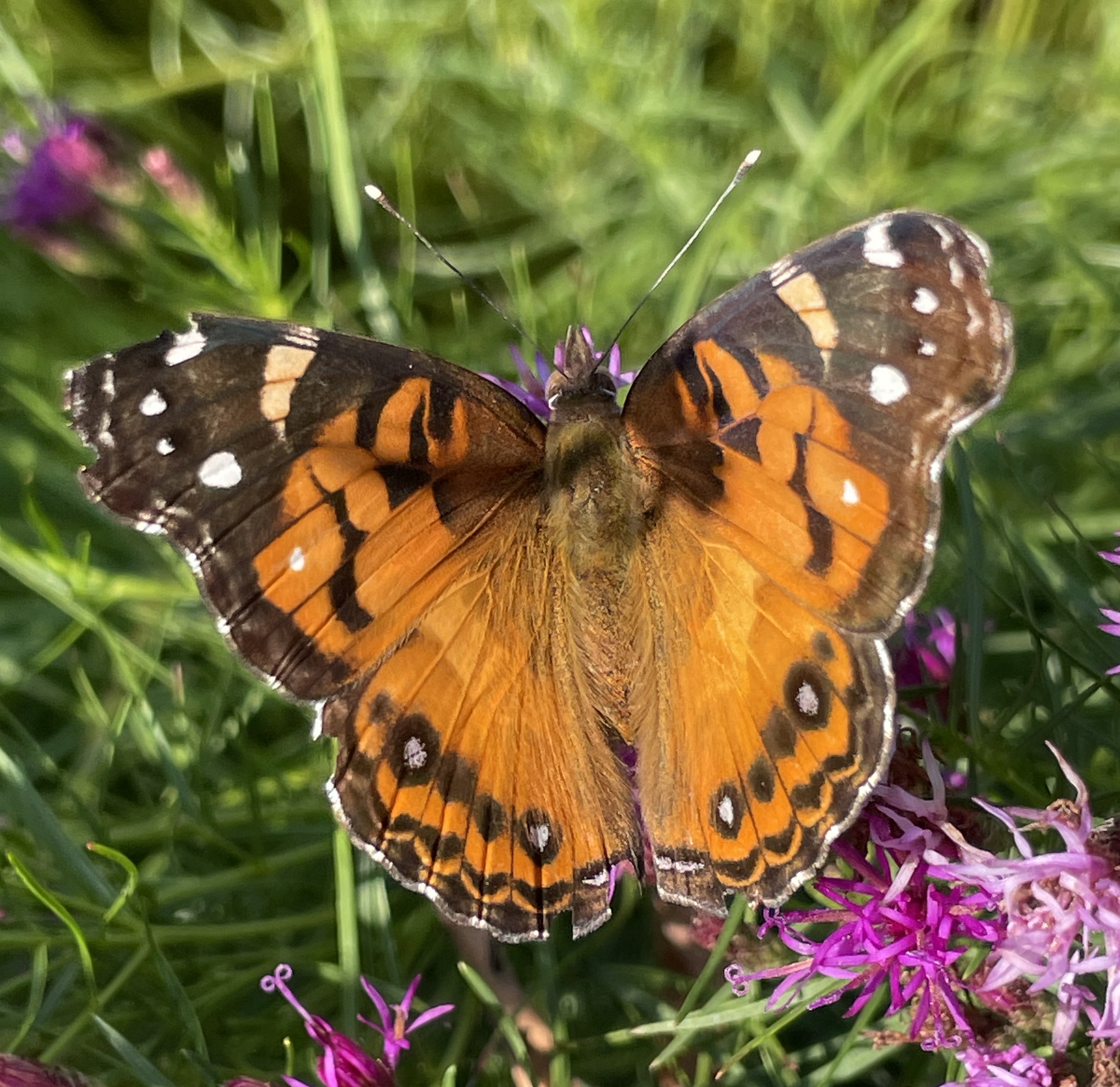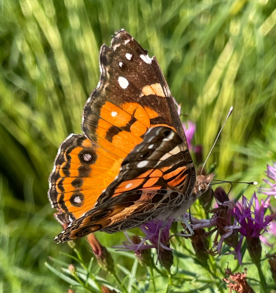 An American Lady/Vanessa virginiensis on Ironweed/Vernonia.
