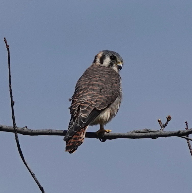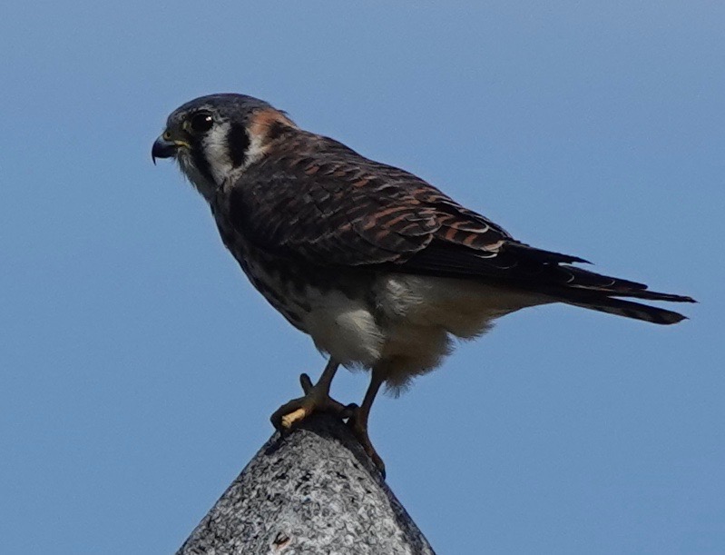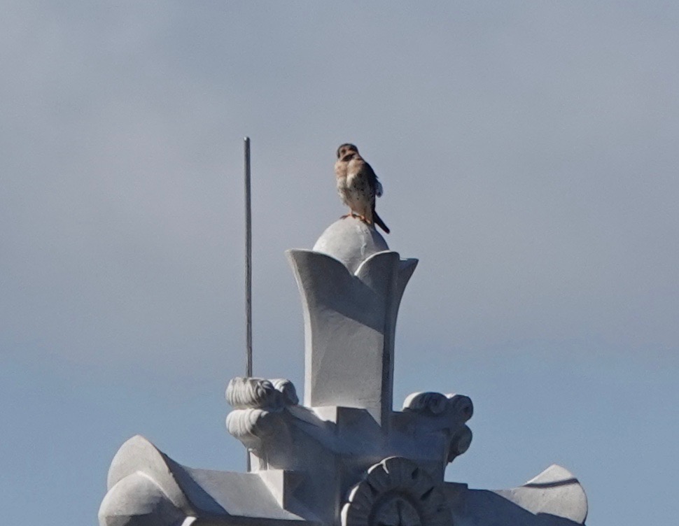 The cross atop the historic Chapel in Green-Wood has just been replaced after the old one, recently cleaned, was shattered by a lighting bolt last year. And of course the local American Kestrels are up there again.
