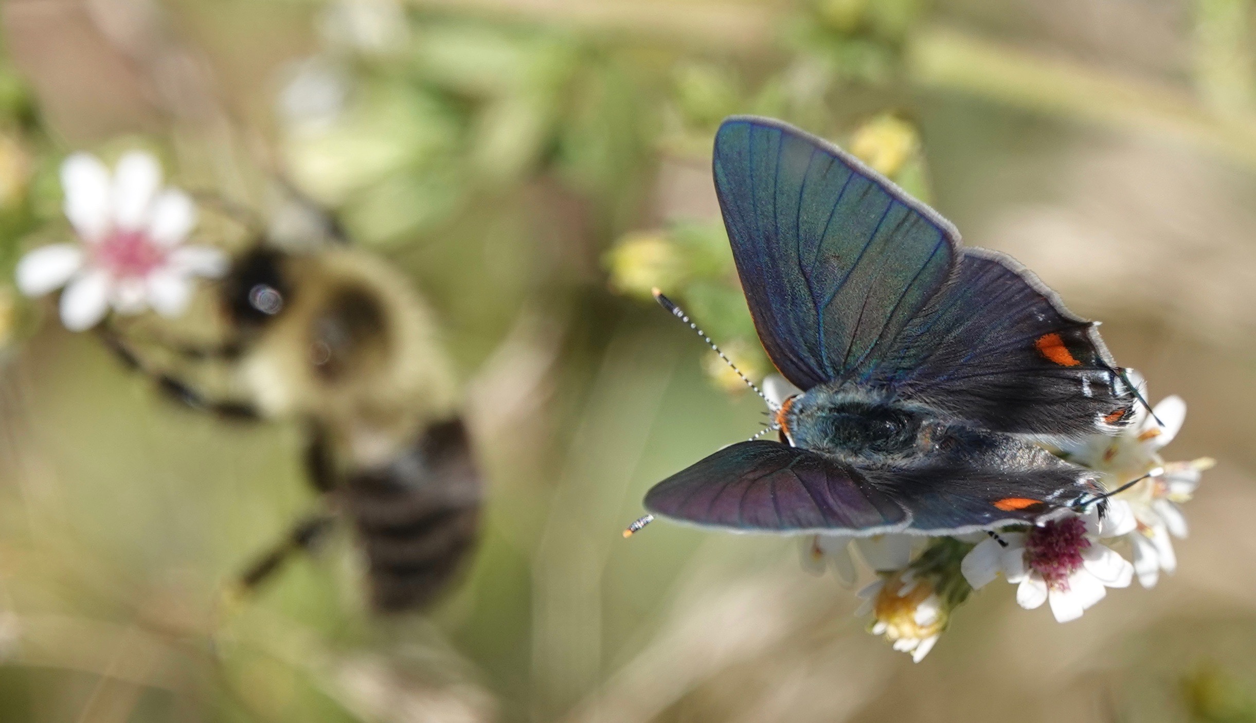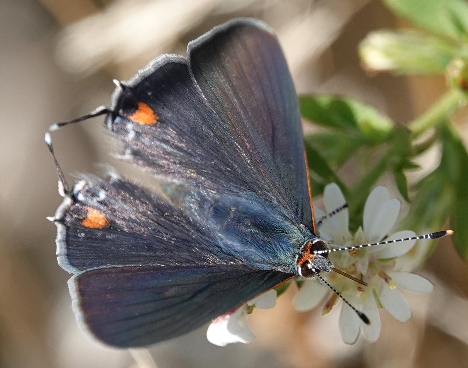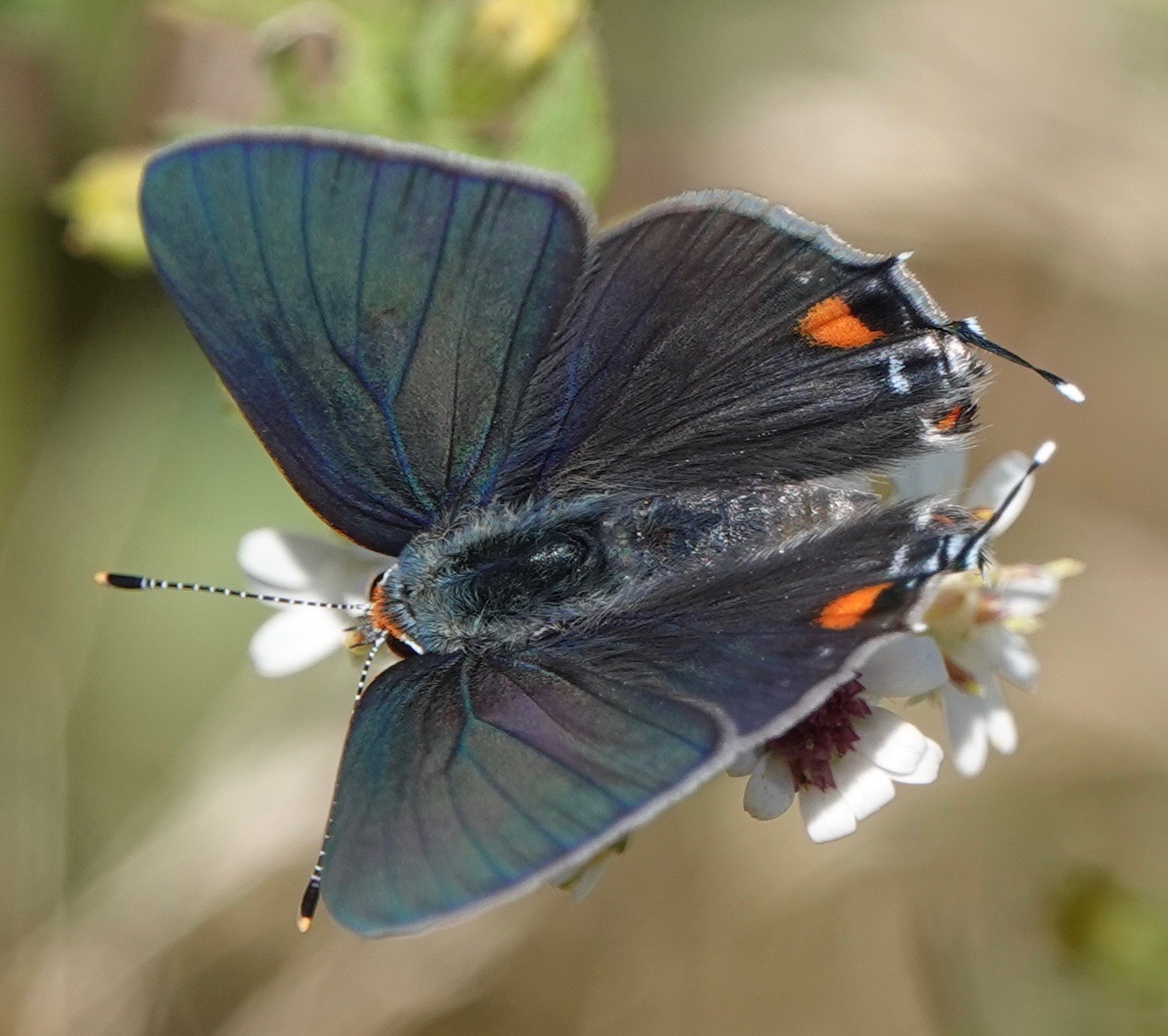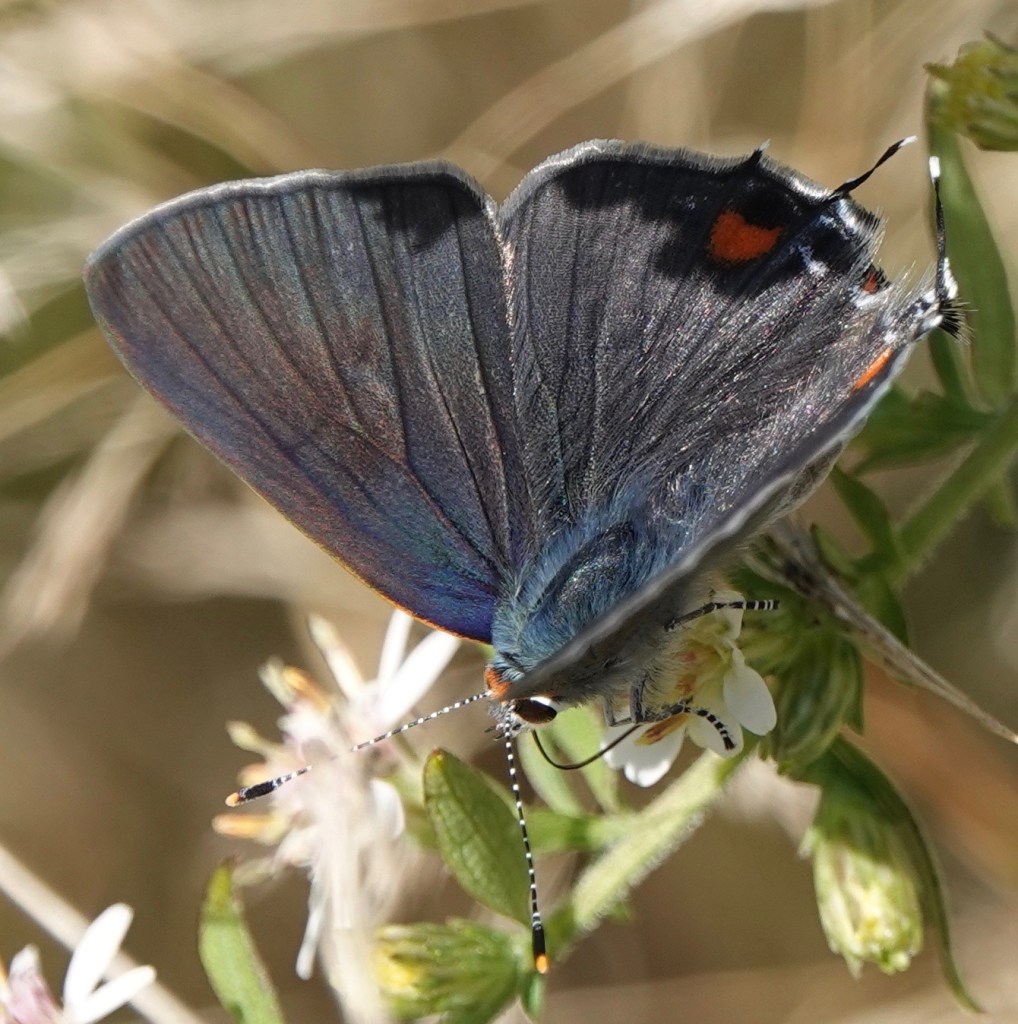 These are more likely than other Hairstreaks to show their inner wing colors.