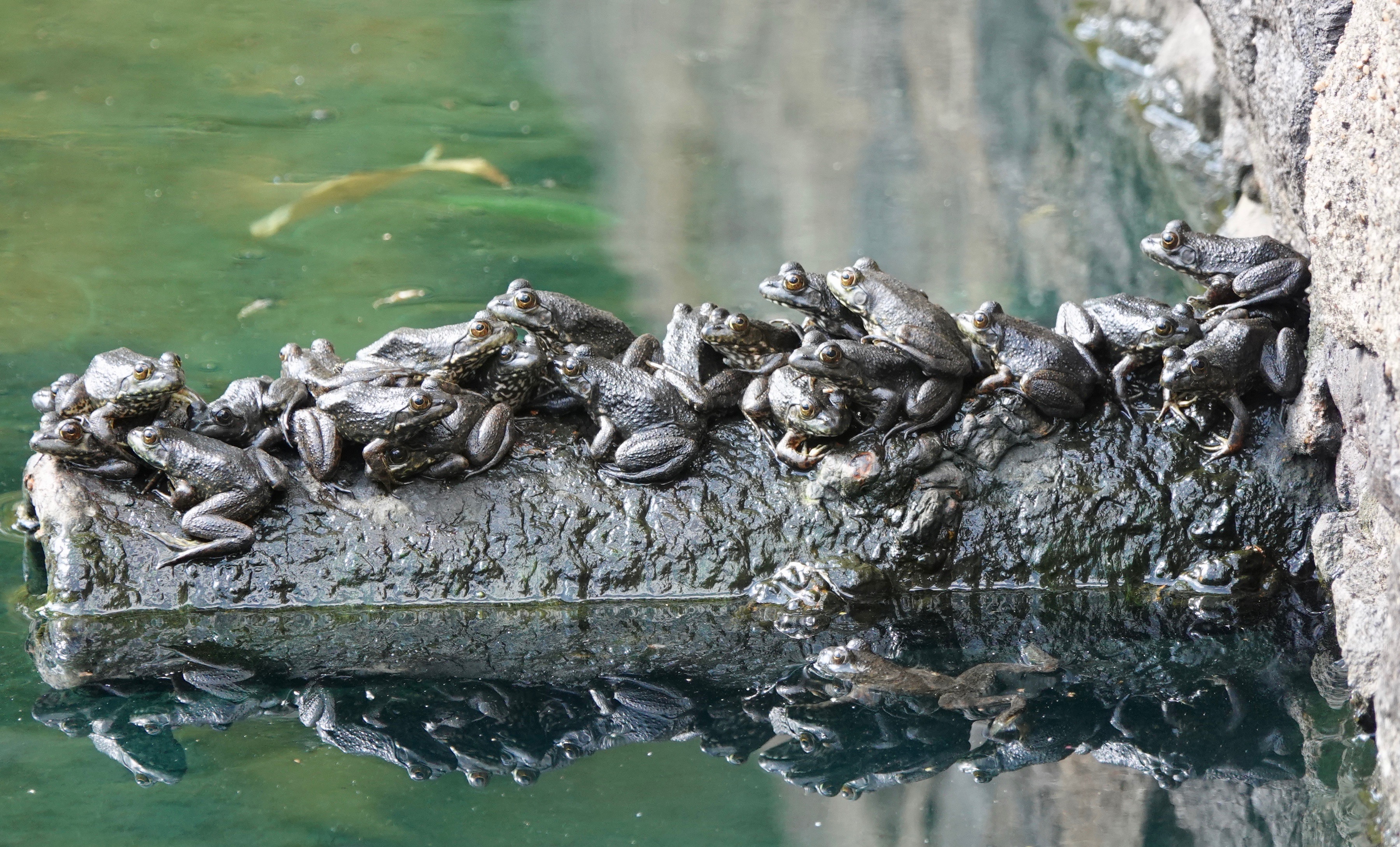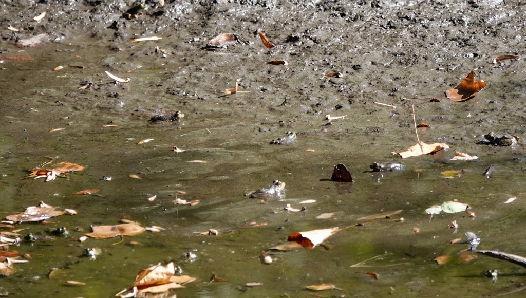 You really have to sneak up on the American Bull Frogs in the Dell Water. You could, after all, be a heron. They usually plop into the water before you even see them.
