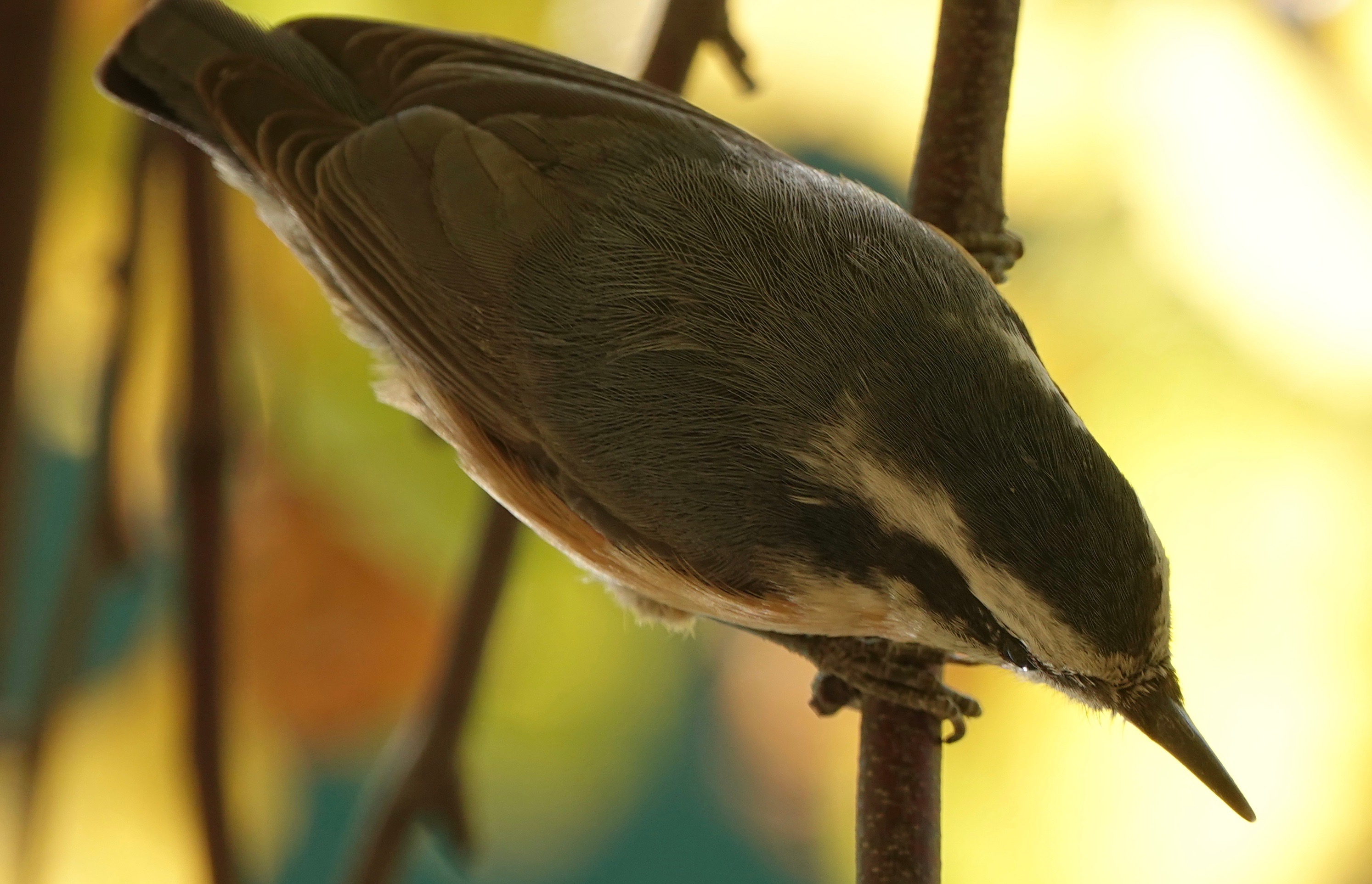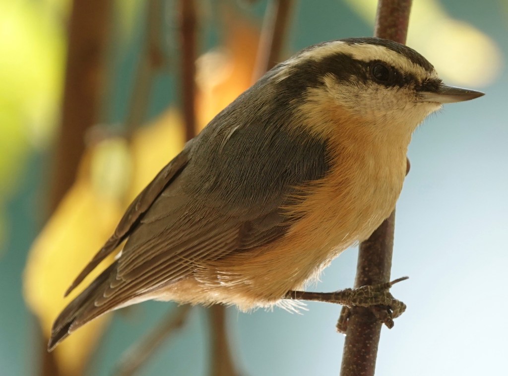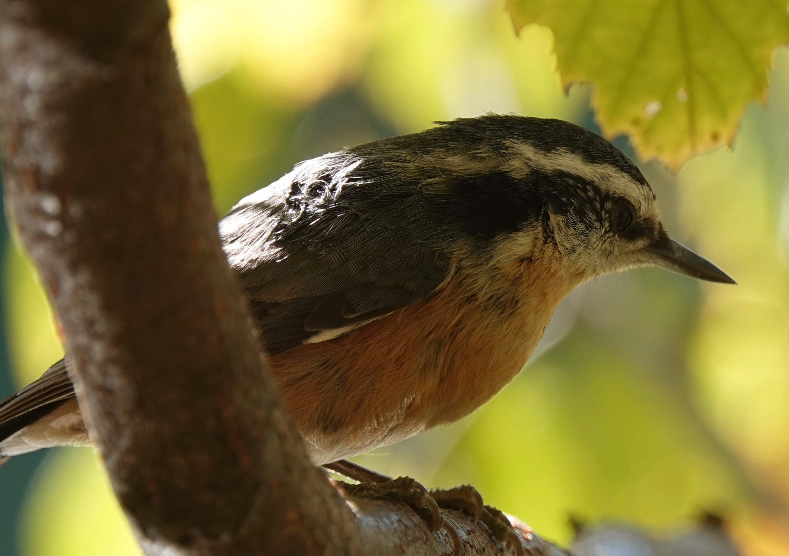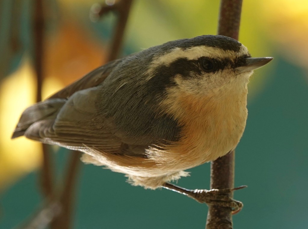 This was sweet. Two Red-breasted Nuthatches, so damn small up close. First some shots of the one on the upper right: