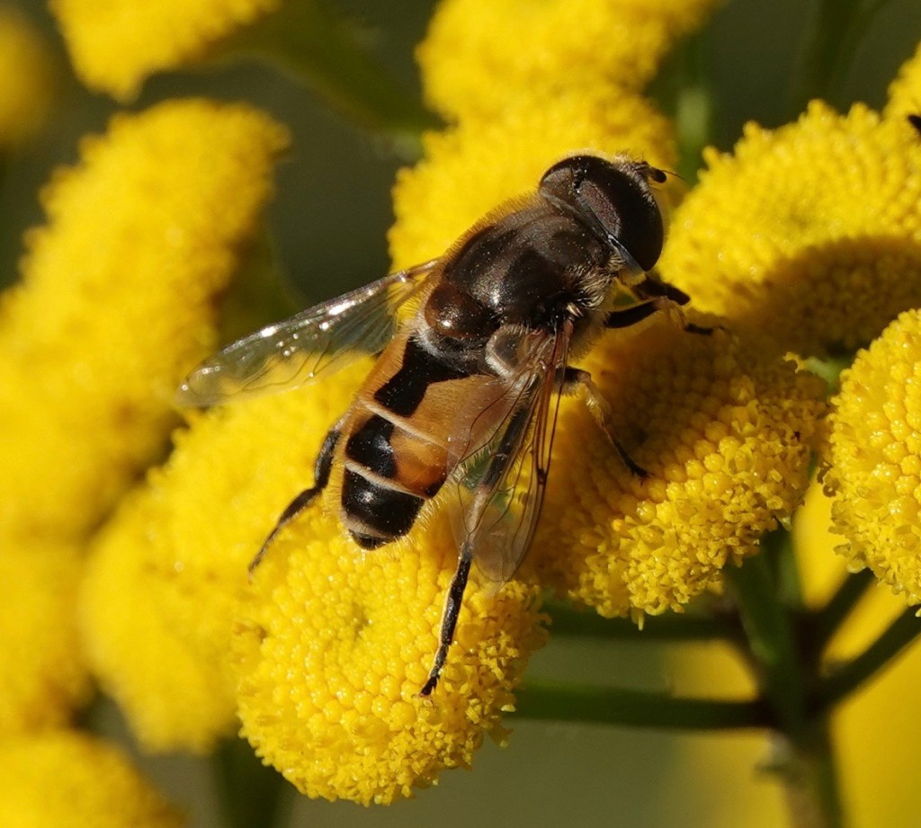 October 31st: about the only thing in bloom is this Tansy/Tanacentum vulgare. It’s kinda stinky. And a pollinator magnet: