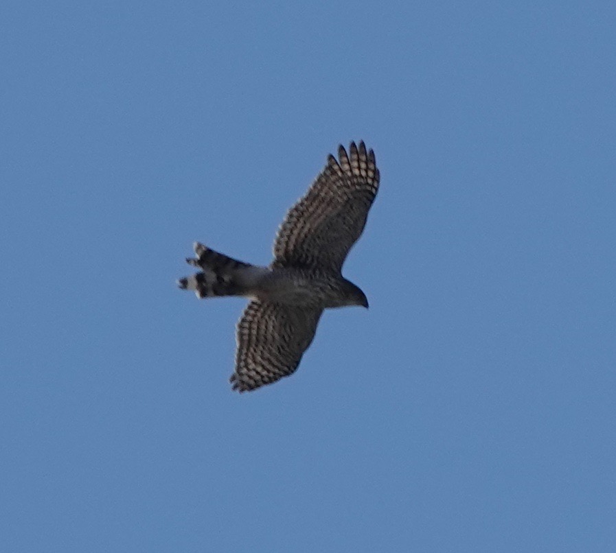 There has been a big shake-up in raptor taxonomy. American Goshawk (Astur atricapillus) and Coopers Hawk (Astur cooperii) have been removed from genus Accipiter. These two are closely-related; there has even been evidence that they can hybridize. They are not, however, closely related to the Sharp-shinned Hawk (Accipter striatus), which remains an Accipiter. Convergent evolution makes Coops and Sharpies look so similar, but that physically similarity is not backed up genetically. Sharpies are closely related to the Eurasian Sparrowhawk (Accipiter nisus) and were the last of the three species of forest hawks to show up in the Americas.