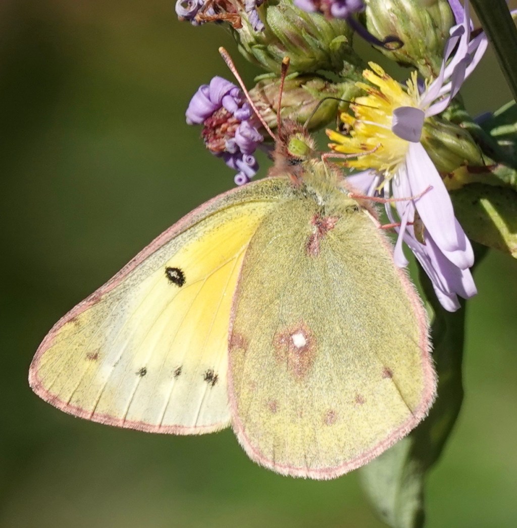 November 18th: Orange Sulphur/Colias eurytheme on a still-blooming aster.