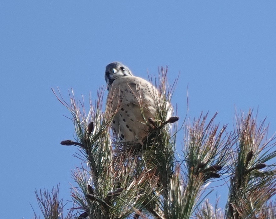 Announcing himself with loud cries, this American Kestrel perched overhead. Both the falcon and the Coopers were still there as well when I left.