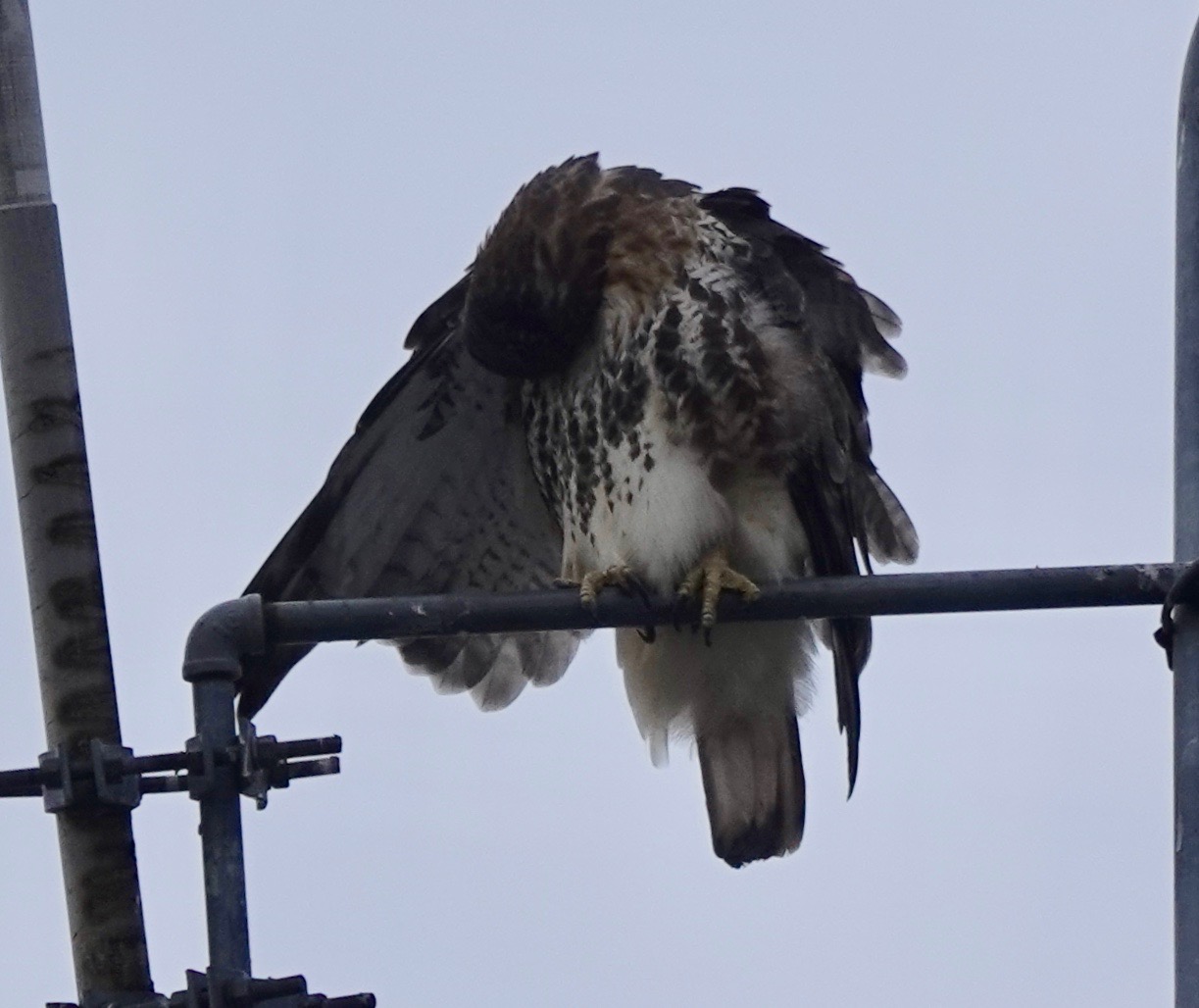 Red-tailed Hawk on antenna tower.
