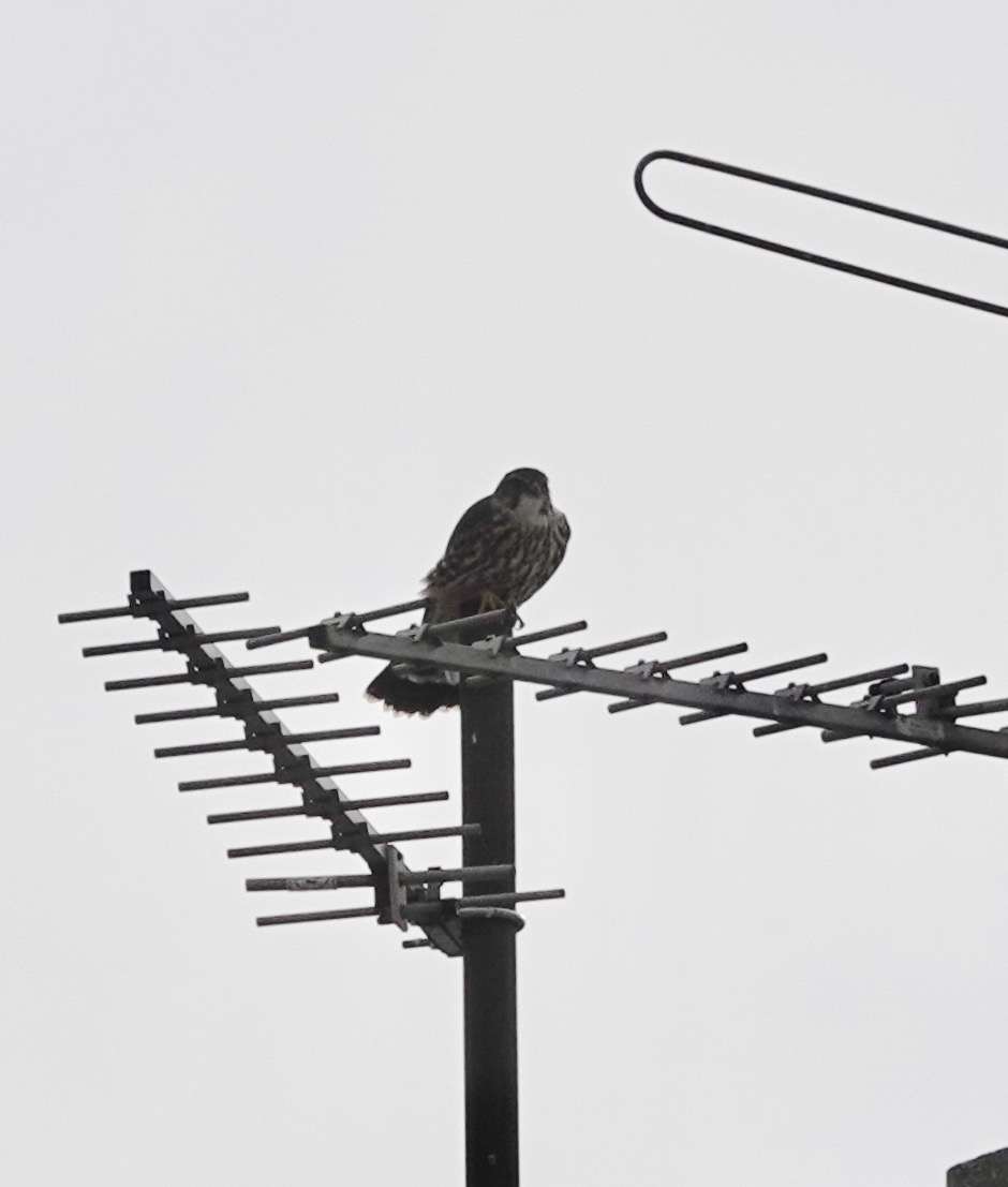 Merlin atop PS24 telecom jumble. Coopers like to perch up here as well.