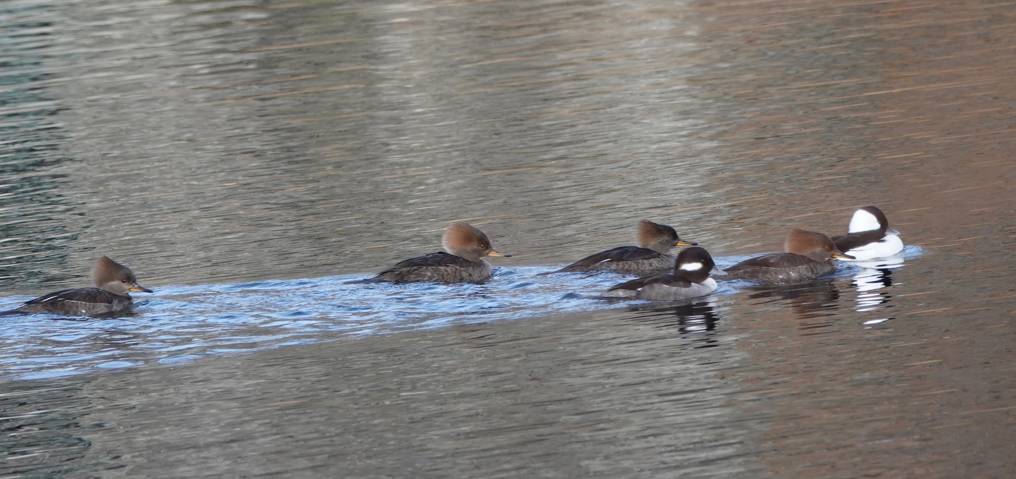 Four Hooded Merganser and a pair of Buffleheads on Sylvan Water recently.