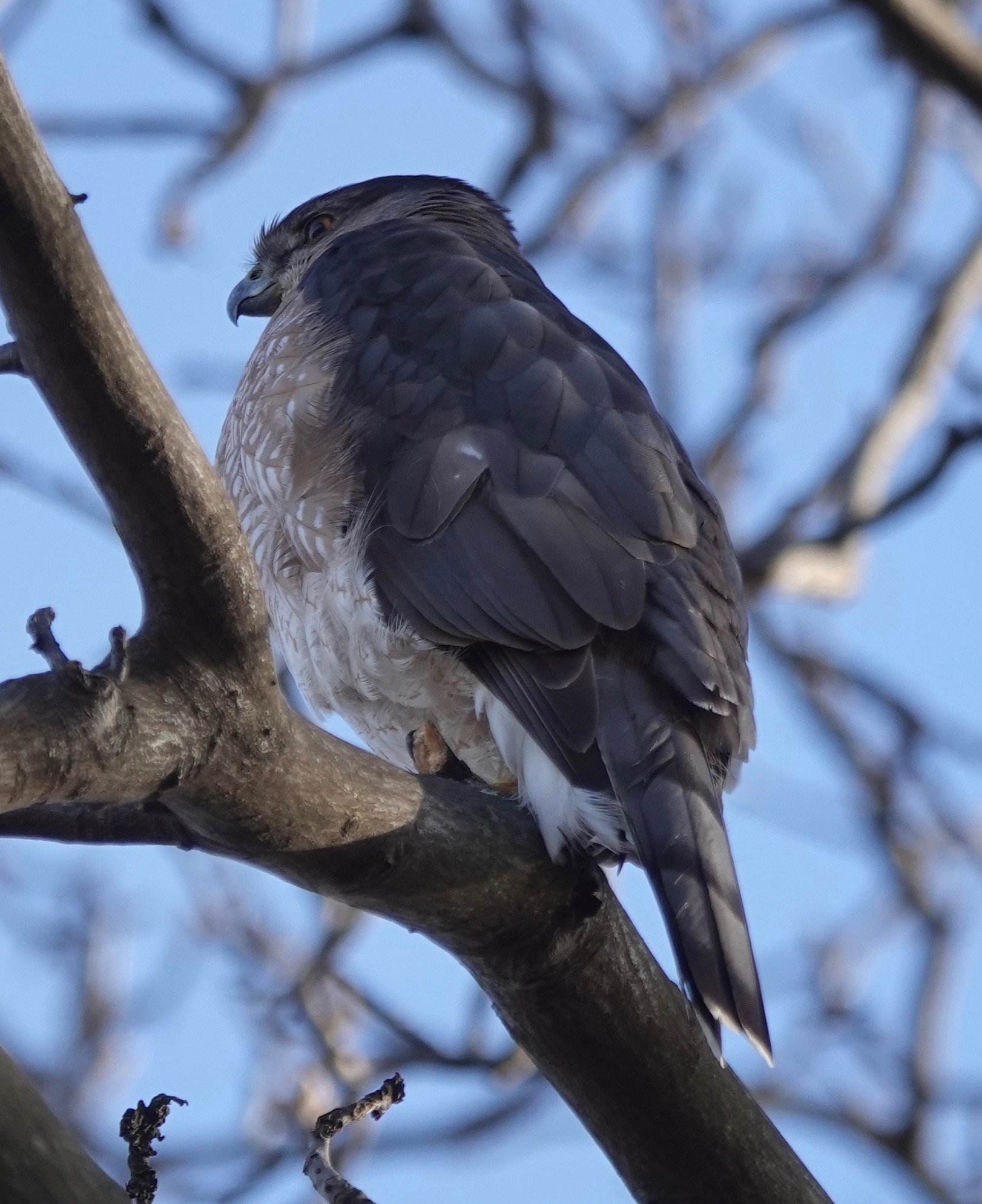 Almost a half hour later, as I approached another bird feeder, this one above Sylvan Water, I saw the birds scatter. Coopers Hawk/Astur cooperii this time.