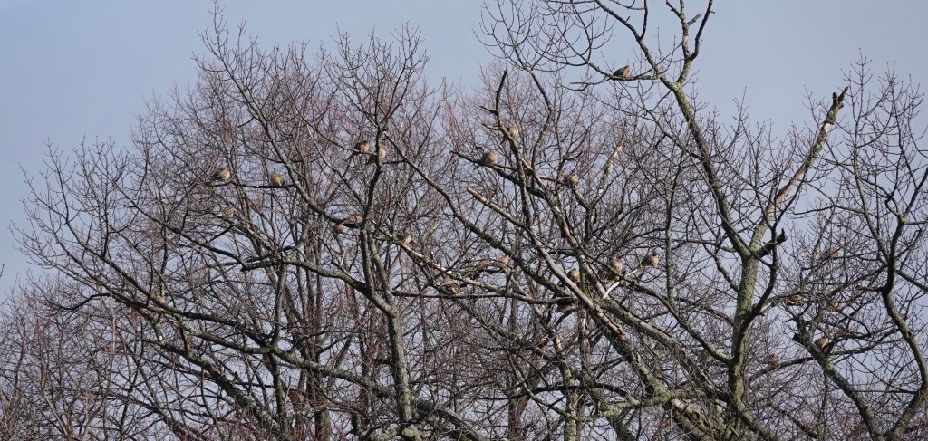 More Feral Pigeons, with a Coopers Hawk on the left. This is fairly common sight from the windows of the Brooklyn Raptor Observatory. Sometimes the Starlings get into the mix as well.
