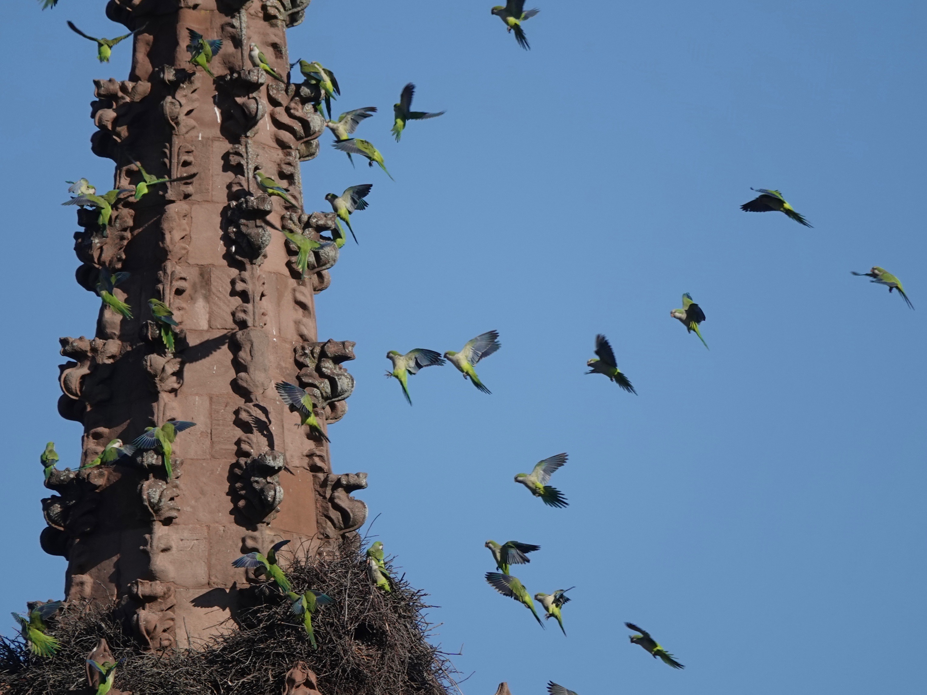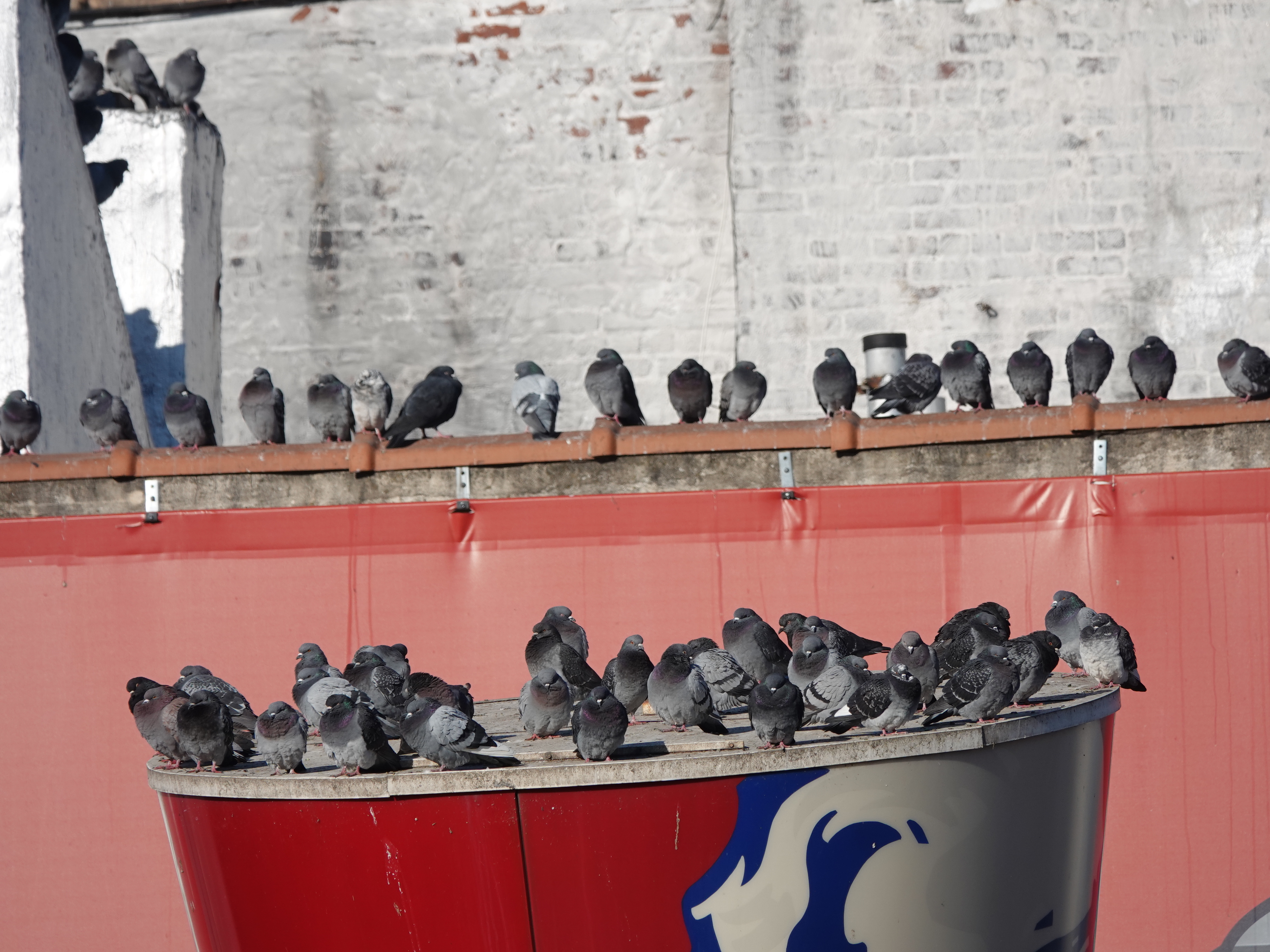More Feral Pigeons, with a Coopers Hawk on the left. This is fairly common sight from the windows of the Brooklyn Raptor Observatory. Sometimes the Starlings get into the mix as well.