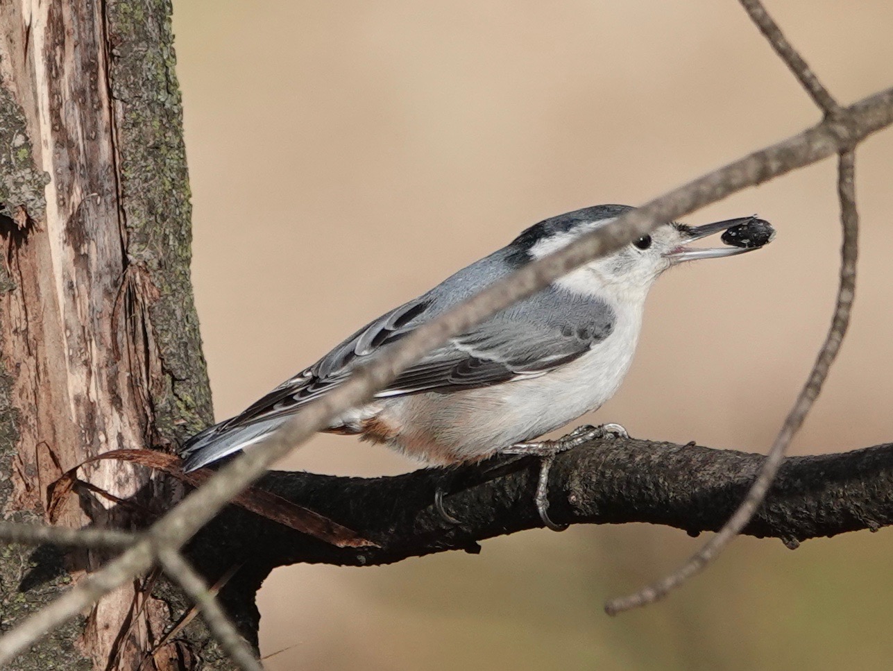 It has been a good winter here for White-breasted Nuthatches. I see and hear them all over Green-Wood, especially but not exclusively at the bird feeding stations.