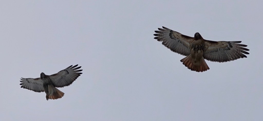 Three were in the air: these two adults (the male is smaller) and a first year bird.