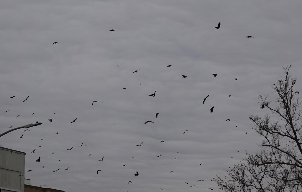 At least 60 crows. They were mostly silent, but finally a couple started sounding like Fish Crows.