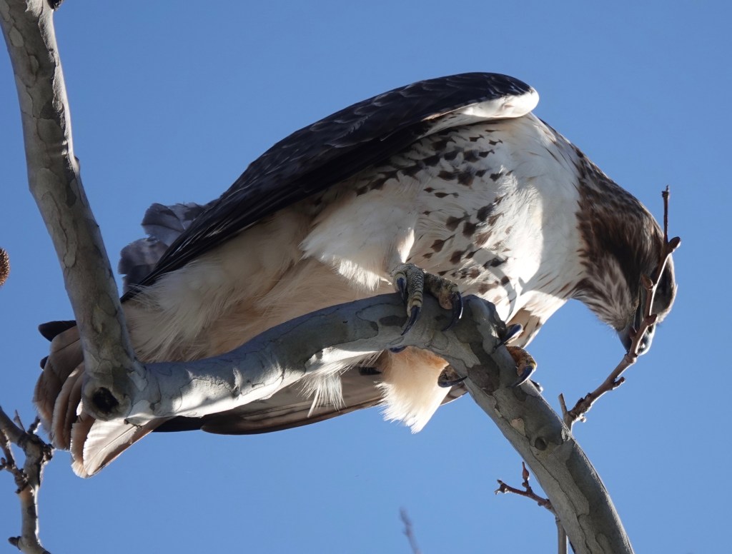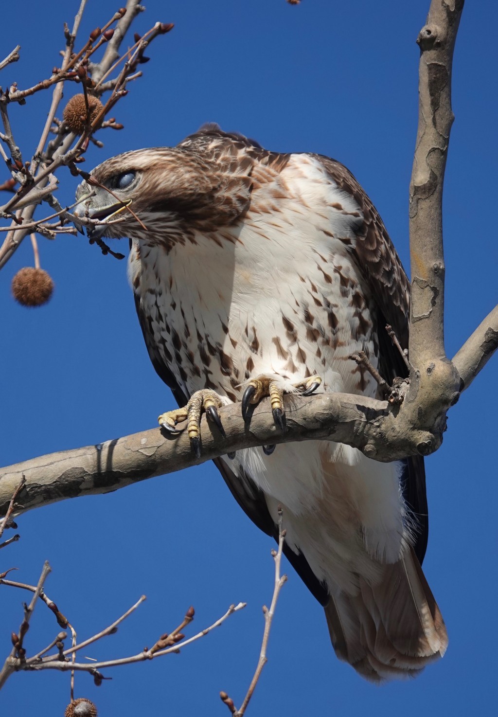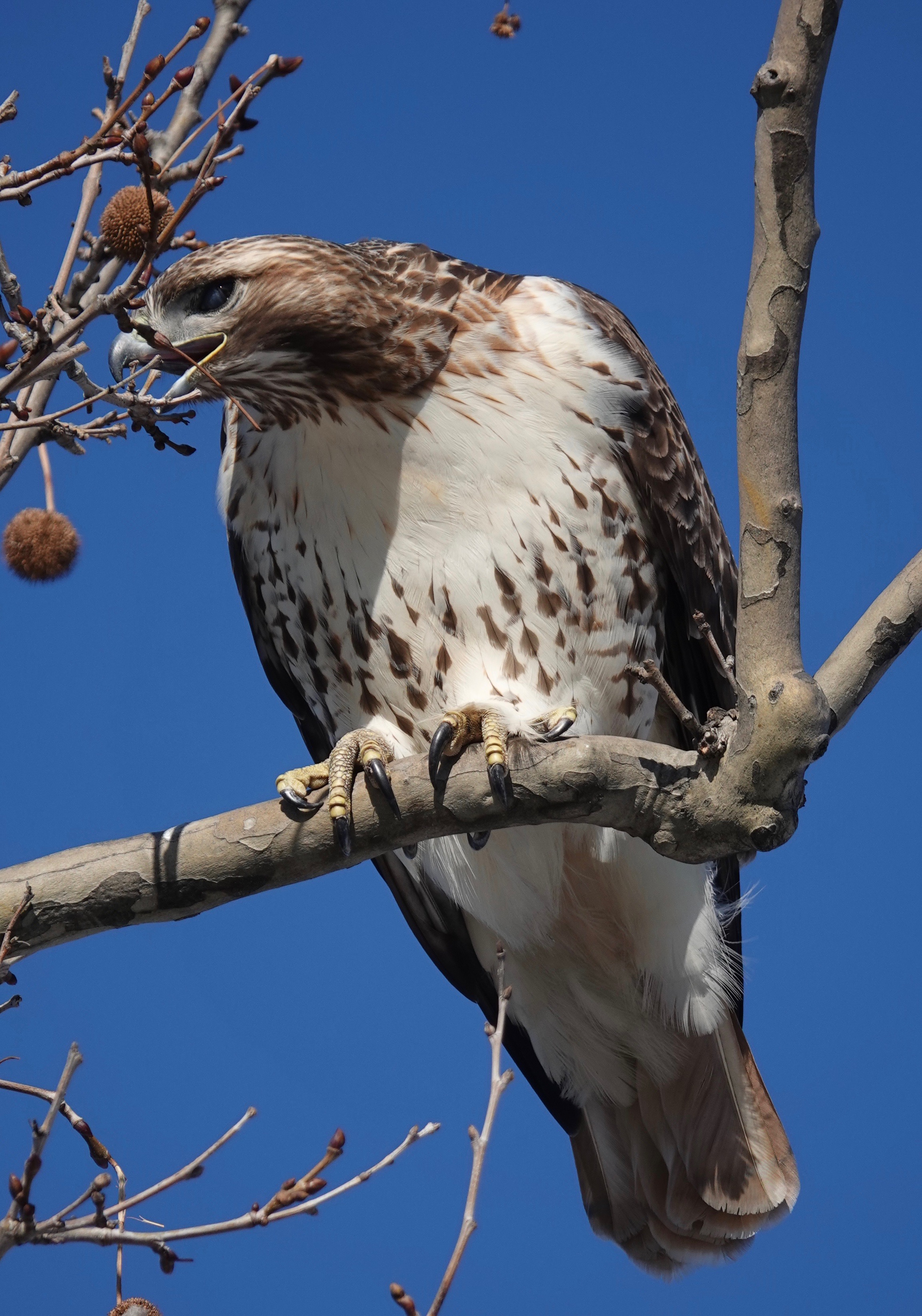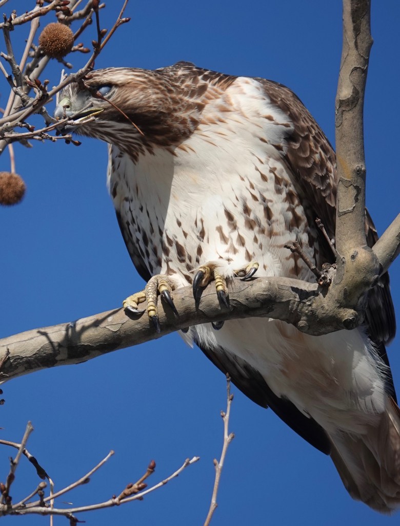 This adult Red-tailed Hawk was right overhead in a couple of the London Planes lining 5th Avenue at the edge of Sunset Park.