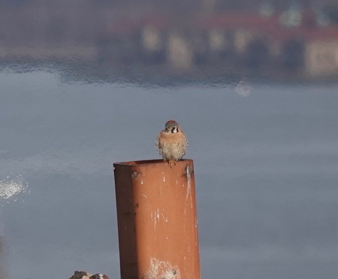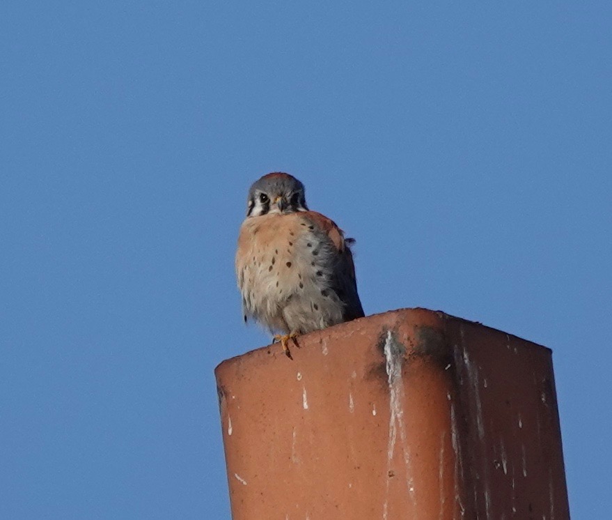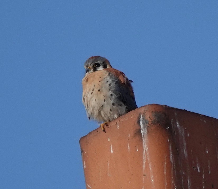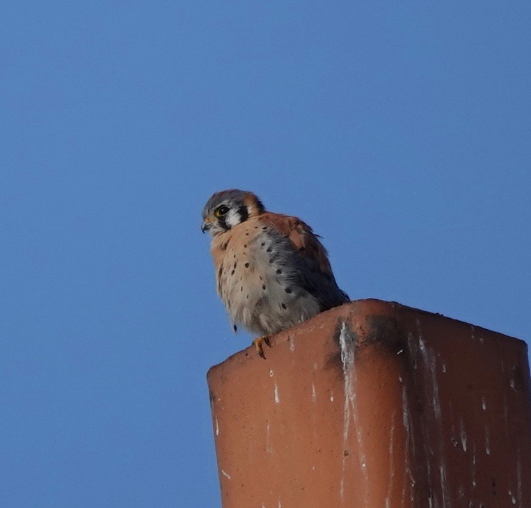 Sometimes the Kestrel on the chimney pot stays there long enough for me to get out of the house and around the corner for a closer view, with less chimney heatwaves: