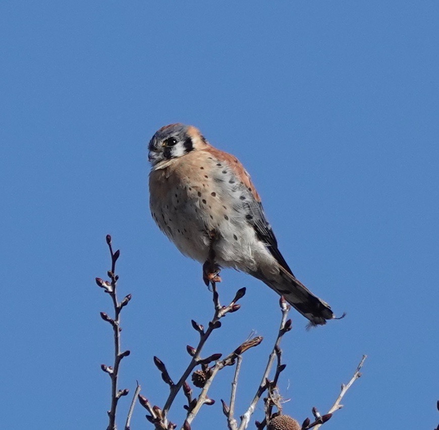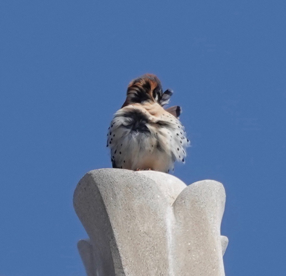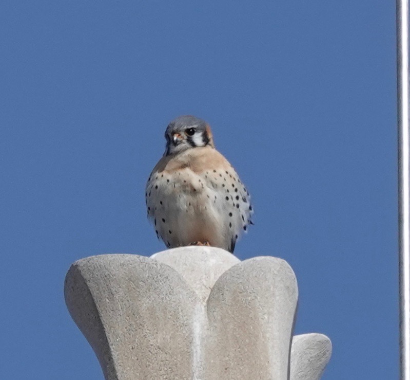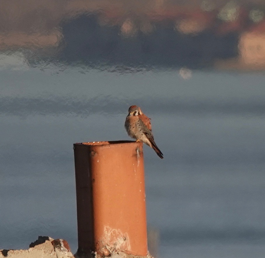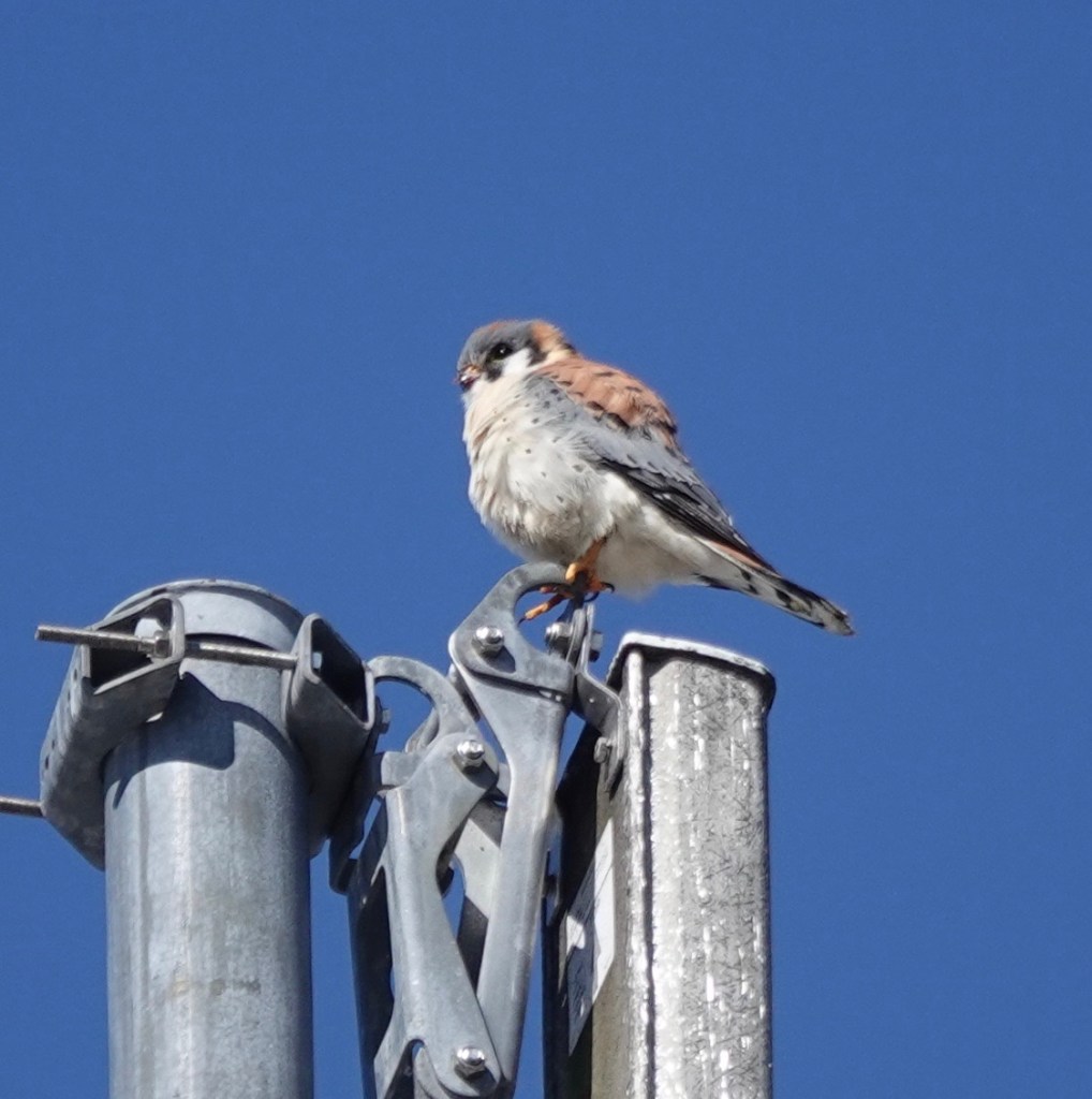 I’ve seen this male American Kestrel on this nearby chimney pot three weekends in a row, with a couple of sightings in-between. This was last Saturday.