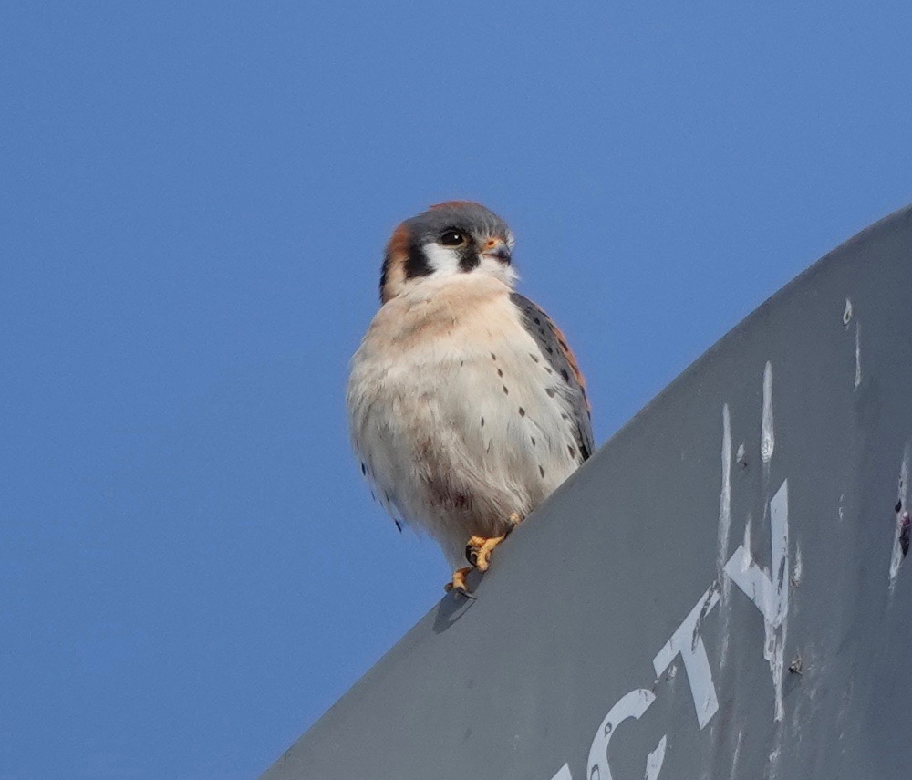 This is the second sighting of this Falco sparverius pair bonding off Sixth Avenue. Have yet to see mating, and the location of their cornice cavity nest.