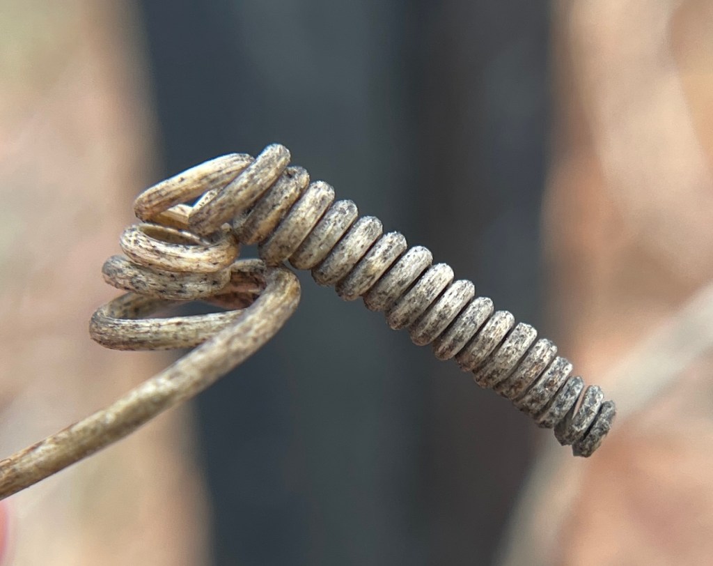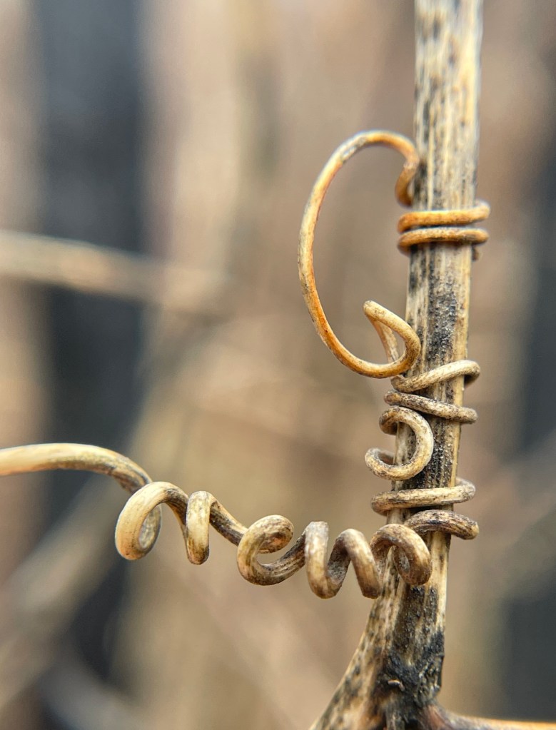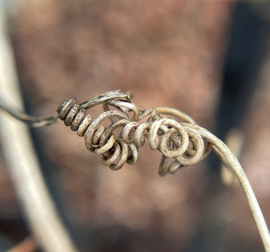 Like Carol Kane’s “beautiful spaghetti” hair, these Purple Passionflower/Passiflora incarnata tendrils catch the eye.