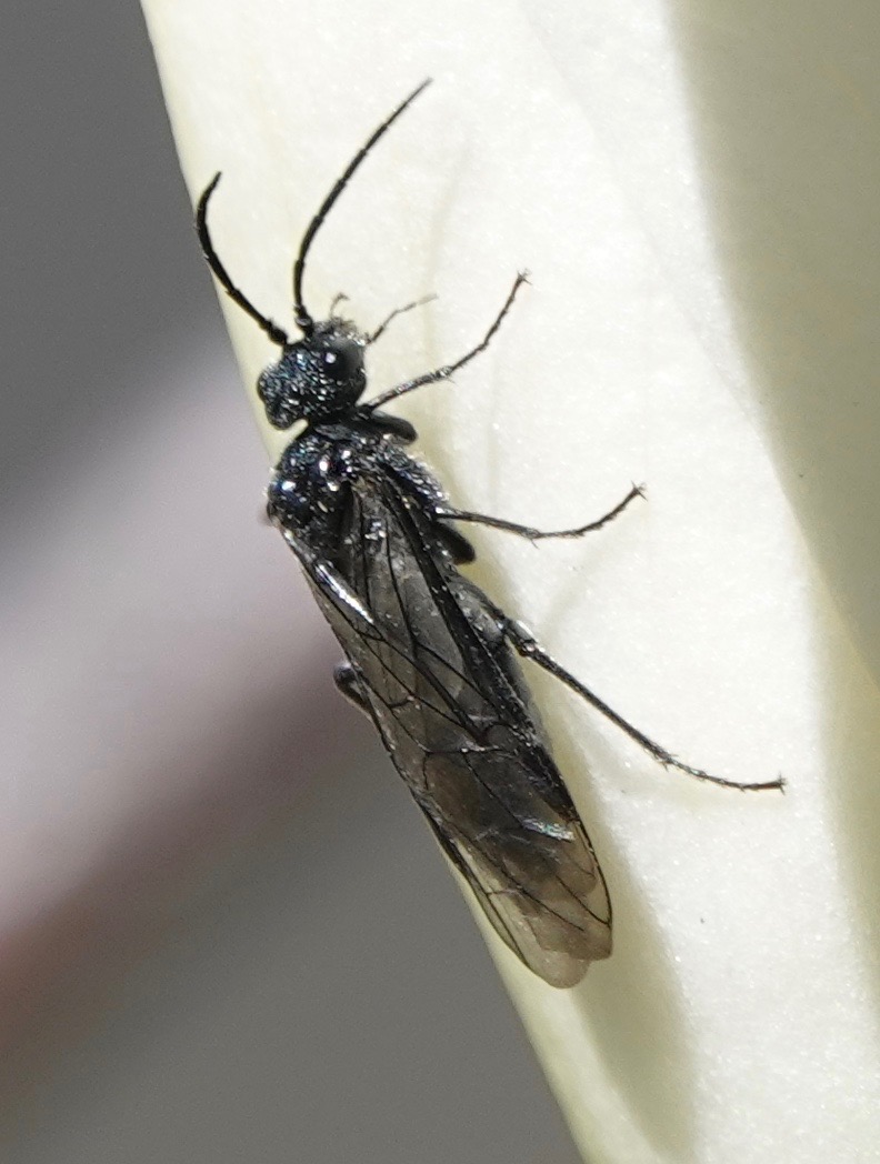 The Bumblebee is from last fall, but these other pictures are of my first Hymenoptera of this season, not counting invasive Western Honey Bees. This is a sawfly, taxonomically distinct from the bees, wasps, and ants. That wing venation looks like the genus Dolerus, maybe D. unicolor, or Early Sawfly, but there are 74 Dolerus species in our area according to bugguide.net. Here the animal is hanging out on a magnolia, another early arrival.