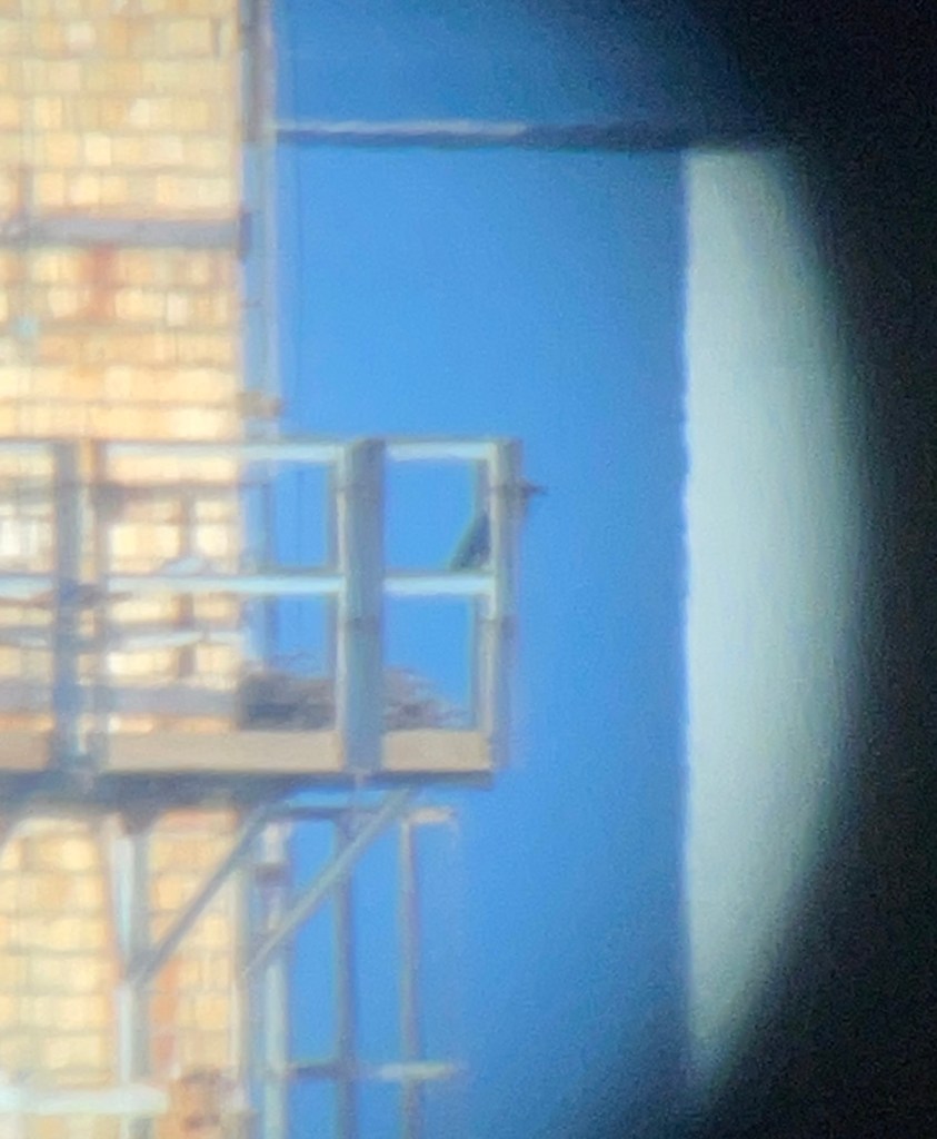 Wednesday I found out. Like the original nest site, this one is also visible from my apartment.