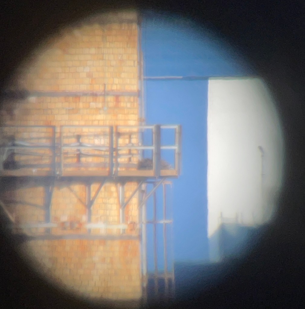 Look who I spotted on a building near the ‘stack. I circled the long block and the bird was up there the whole time. Very suggestive.