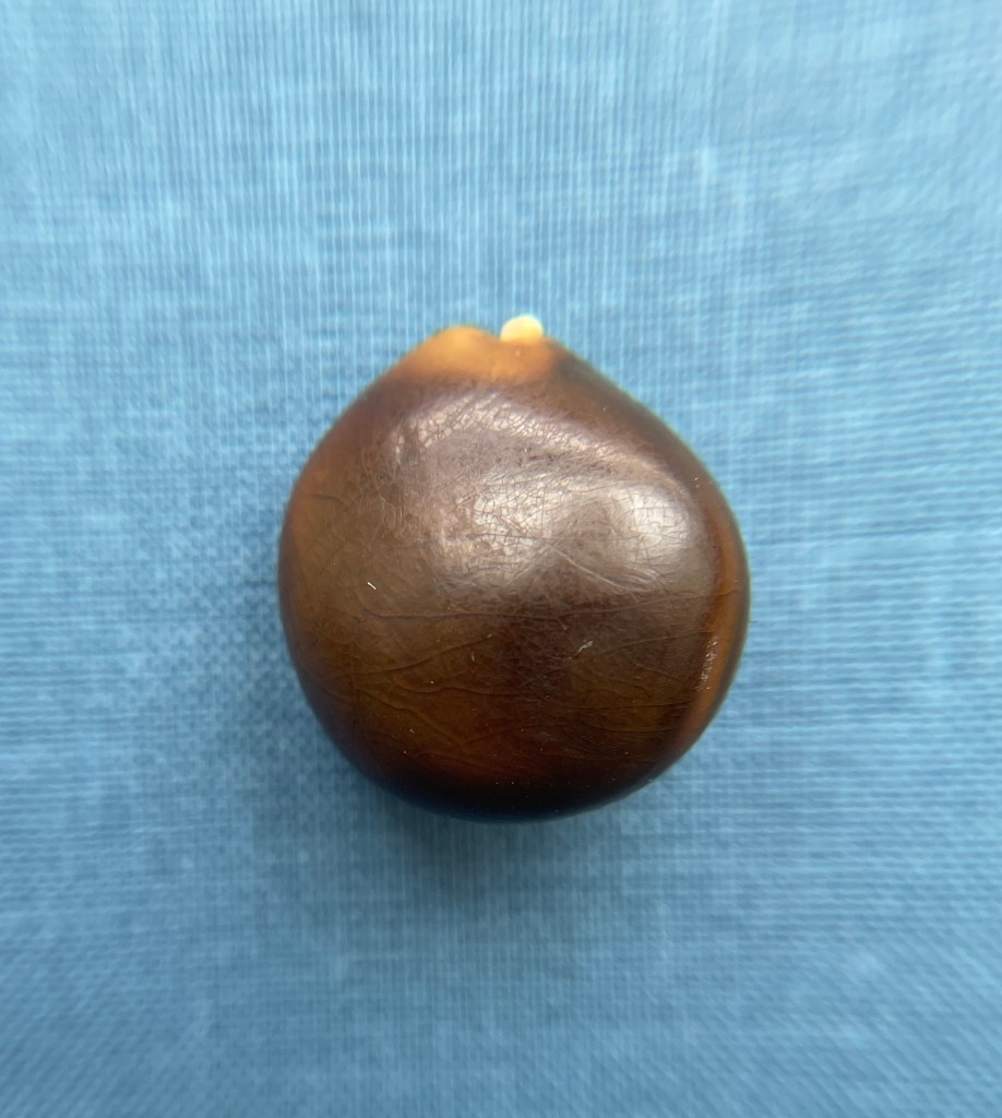 If you clean the green goo off and polish these with your palm sweat, they turn into cool thingamajigs good for rattling in your winter coat pocket.