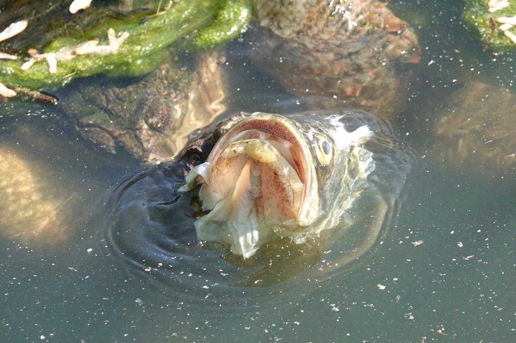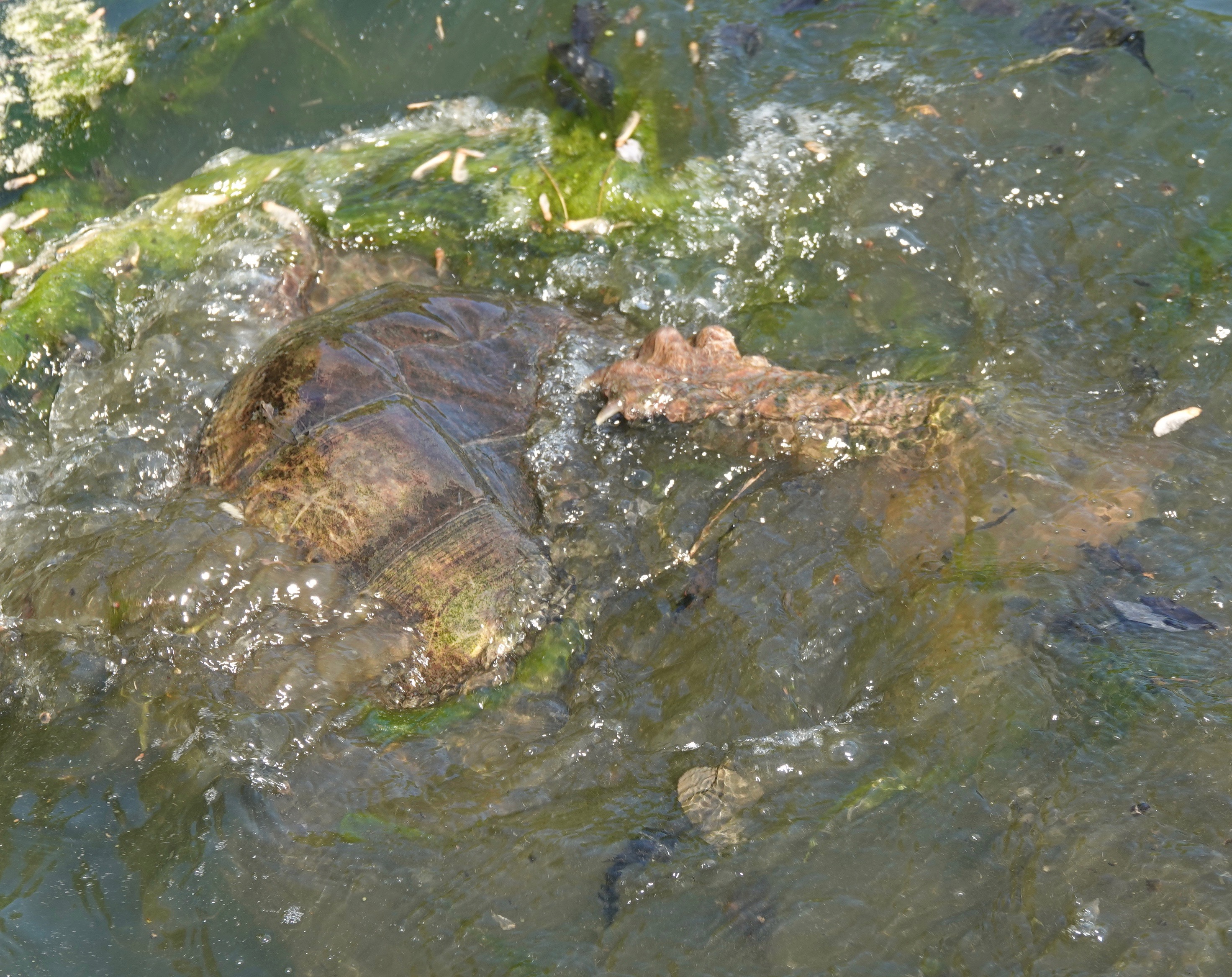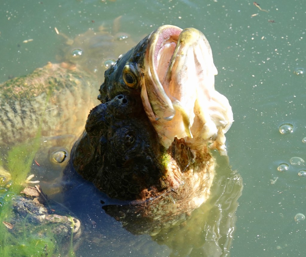 Common Snapping Turtle with what’s been identified for me on iNaturalist as a Largemouth Bass.