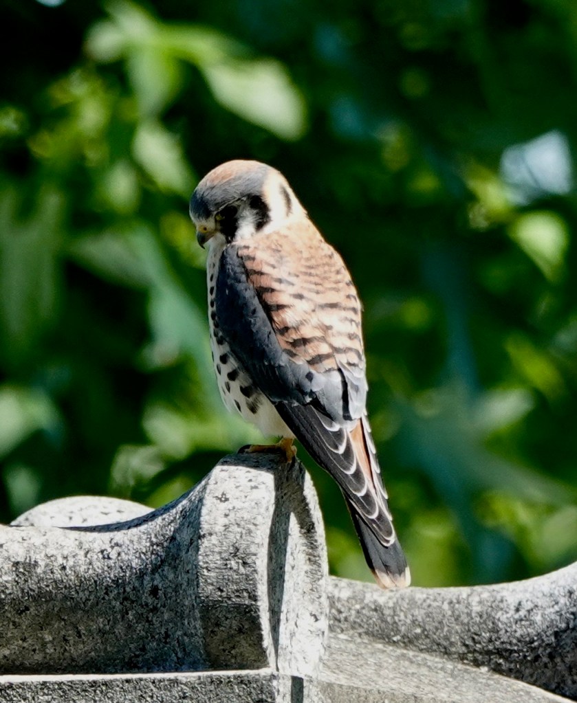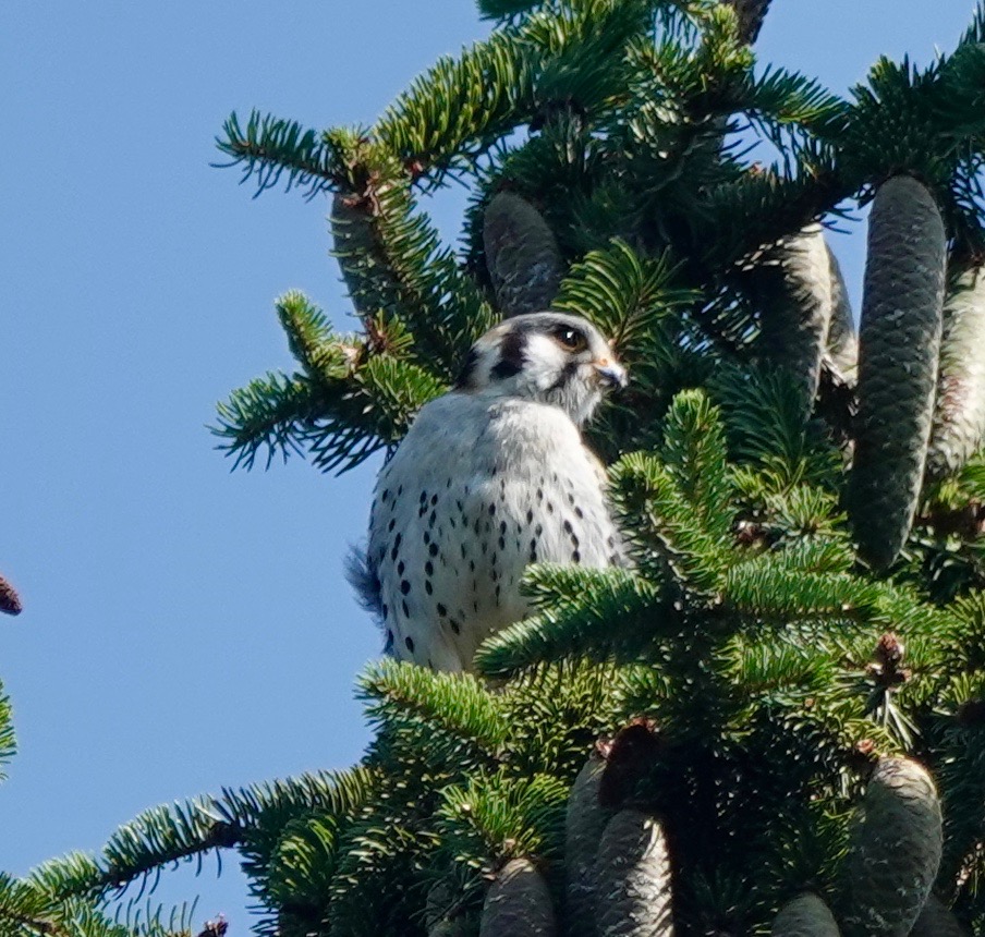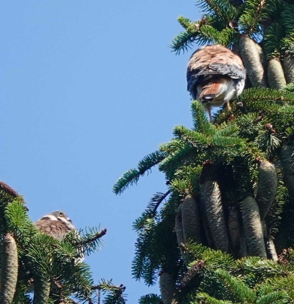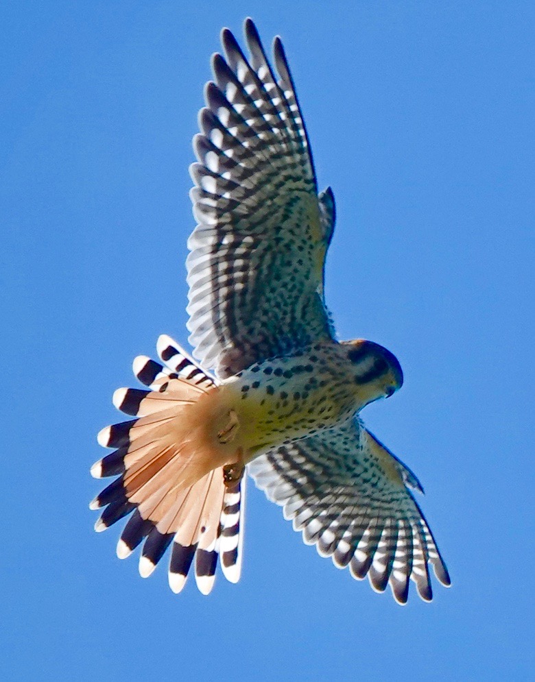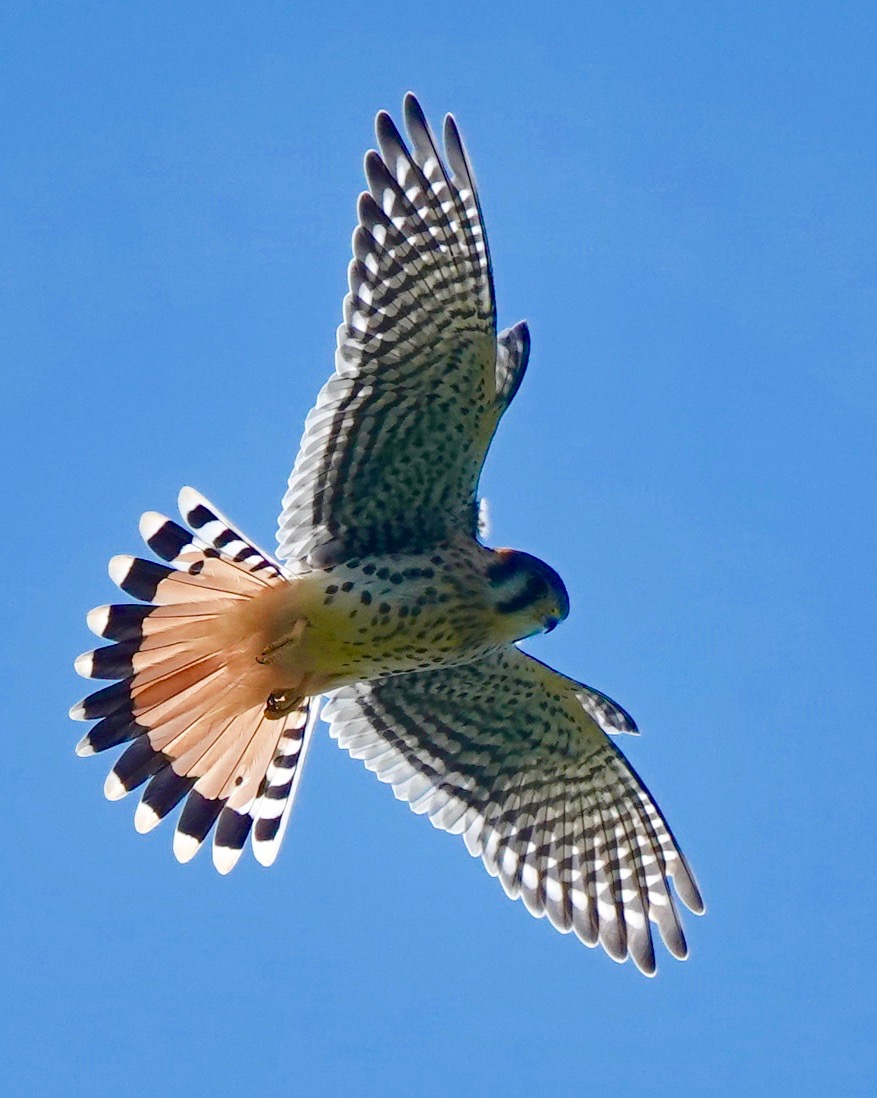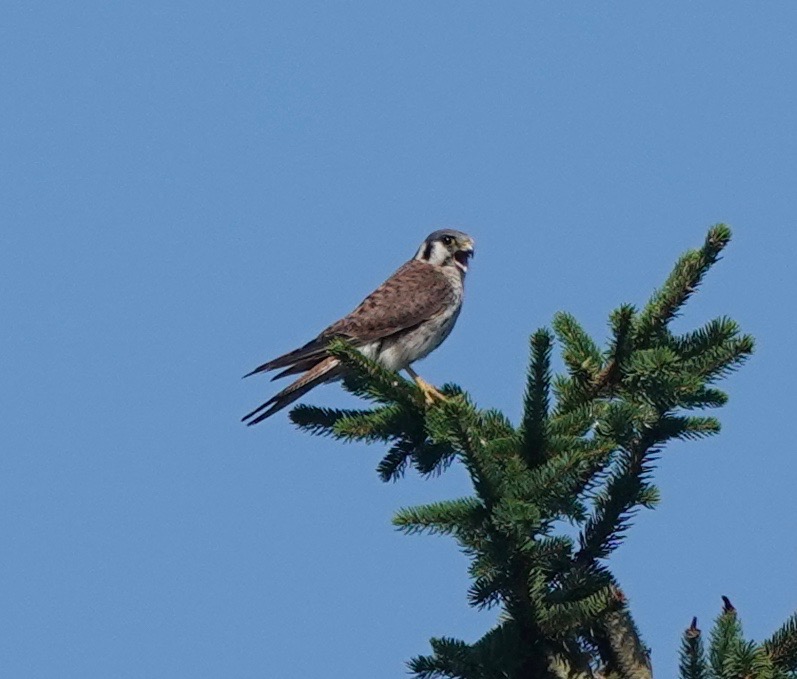 One month or so after fledging, the young American Kestrels are out and about, usually found by their plaintive cries. This one was hovering over Lizard Hill. (That’s what I’d call it if I was a Kestrel!)