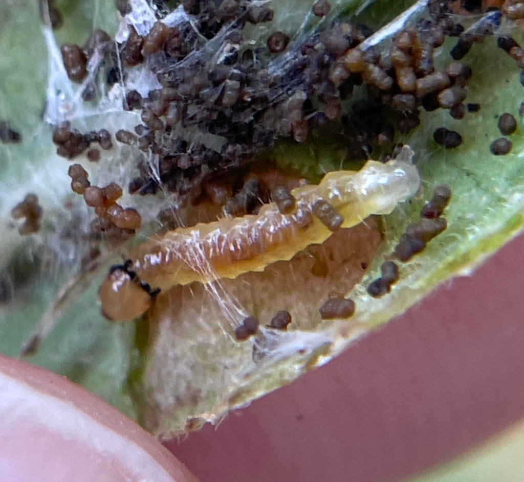 There were also several rolled and silk tied leaves. Most were filled with poop and nothing else.