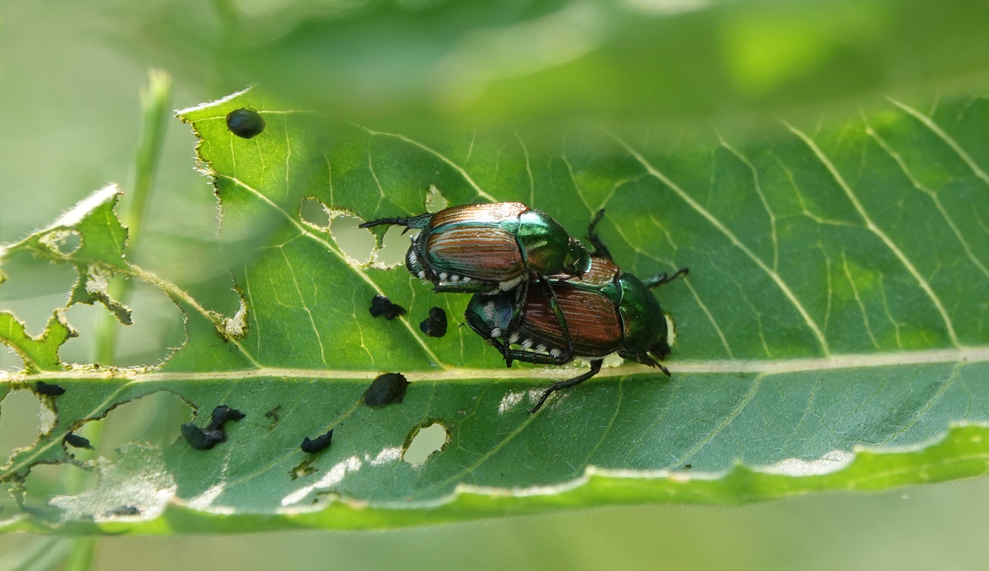 Most of that to the left of these Japanese Beetles is poop, but look up around 10:00.