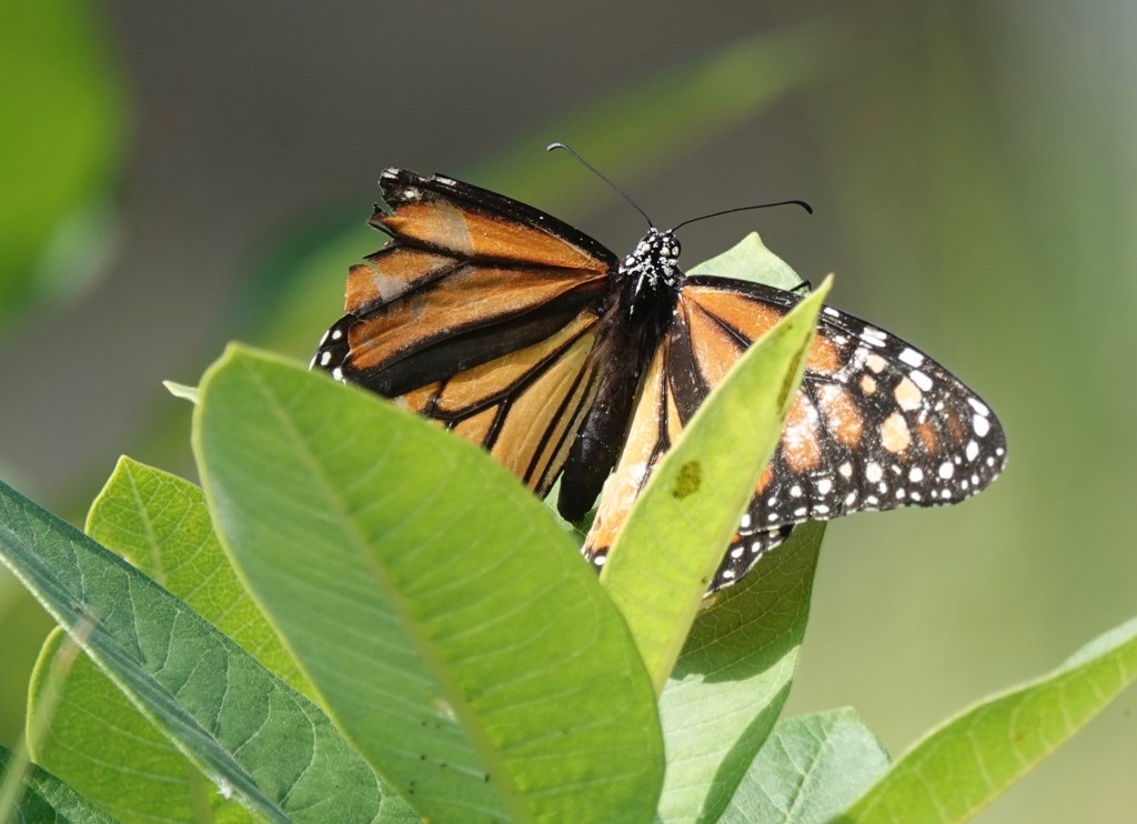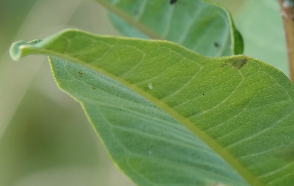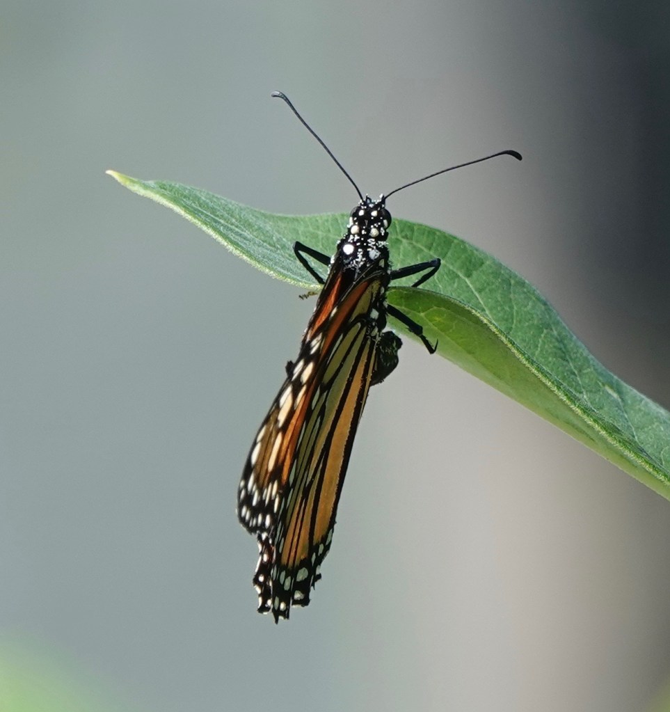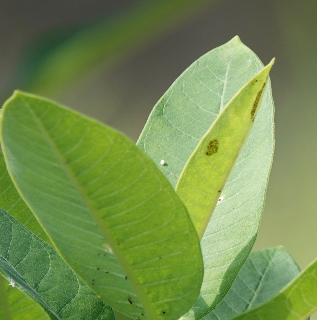 I watched this three-and-a-half-winged Monarch lay egg after egg recently. Here are just a few: