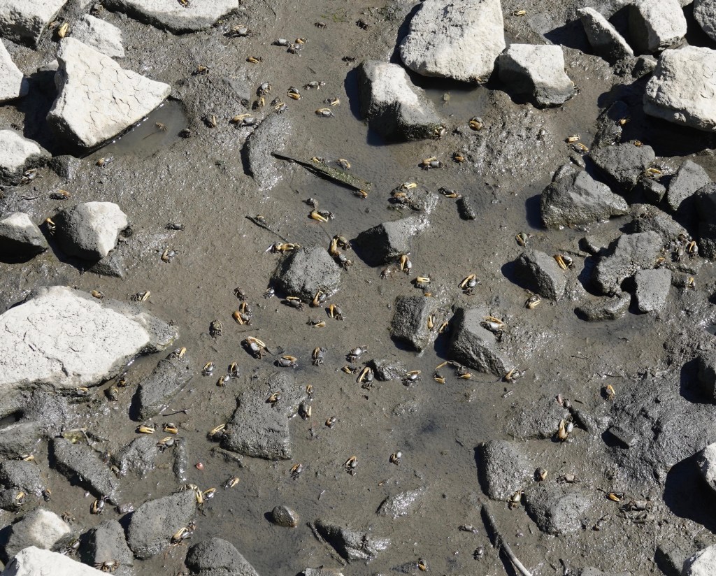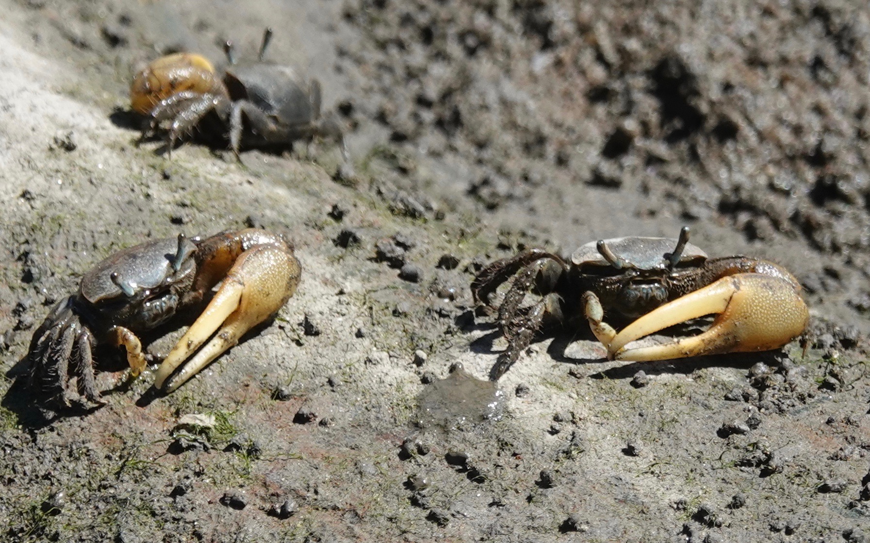 Mud Fiddler Crabs/Minuca pugnax in the toxic muck of the canal.