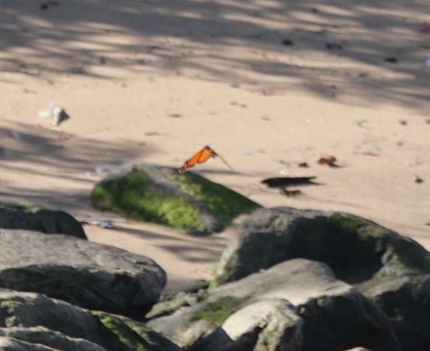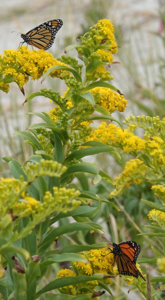 Four of the five Monarchs I saw last Tuesday at Rockaway Beach, the terminus of Long Island, last stop before jumping off to New Jersey. (The last pictured was having trouble flying; kinda don’t think it was going to make it to Mexico.)