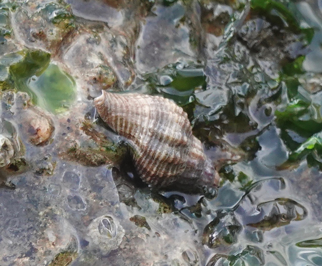 This caught my eye. It’s an Eastern Oyster Drill/Urosalpinx cinera, but boy is it bigger than the 1cm long shells I’ve found in the past. This was maybe 3cm long.