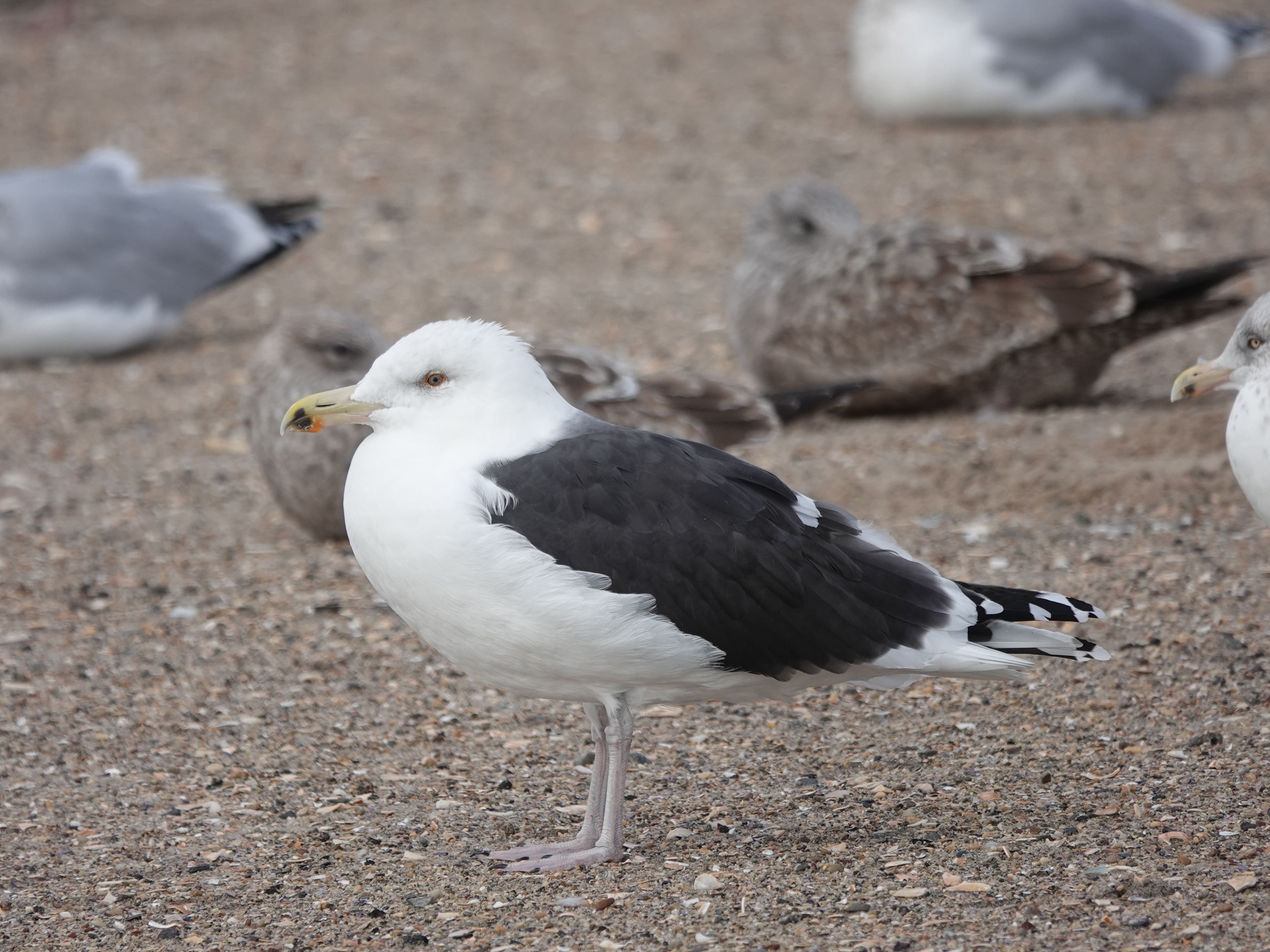 Two views of a nearby Greater Black-backed Gull/Larus marinus, largest gull species in the world.